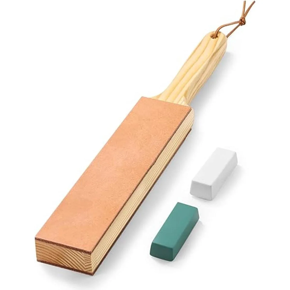 ANGERSTONE Strop de cuero de doble cara para afilar cuchillos, kit de bloque de 14 x 2 pulgadas con compuesto de pulido, cuchillo con mango ergonómico para afilar cuchillos, cinceles para carpintería