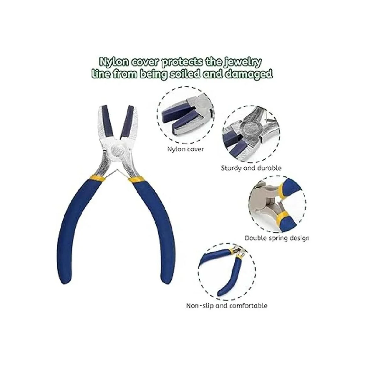 AngleKai Juego de alicates de nailon para hacer joyas 6 en 1, alicates para hacer fianzas y mandíbula de nailon, alicates de nariz plana para hacer joyas, anillo de salto azul