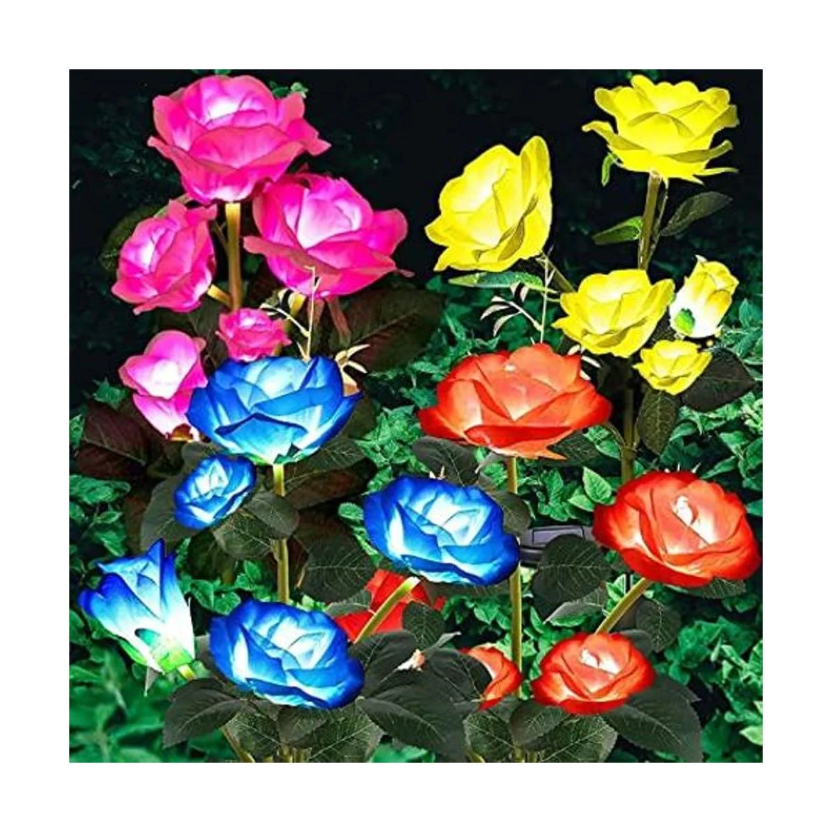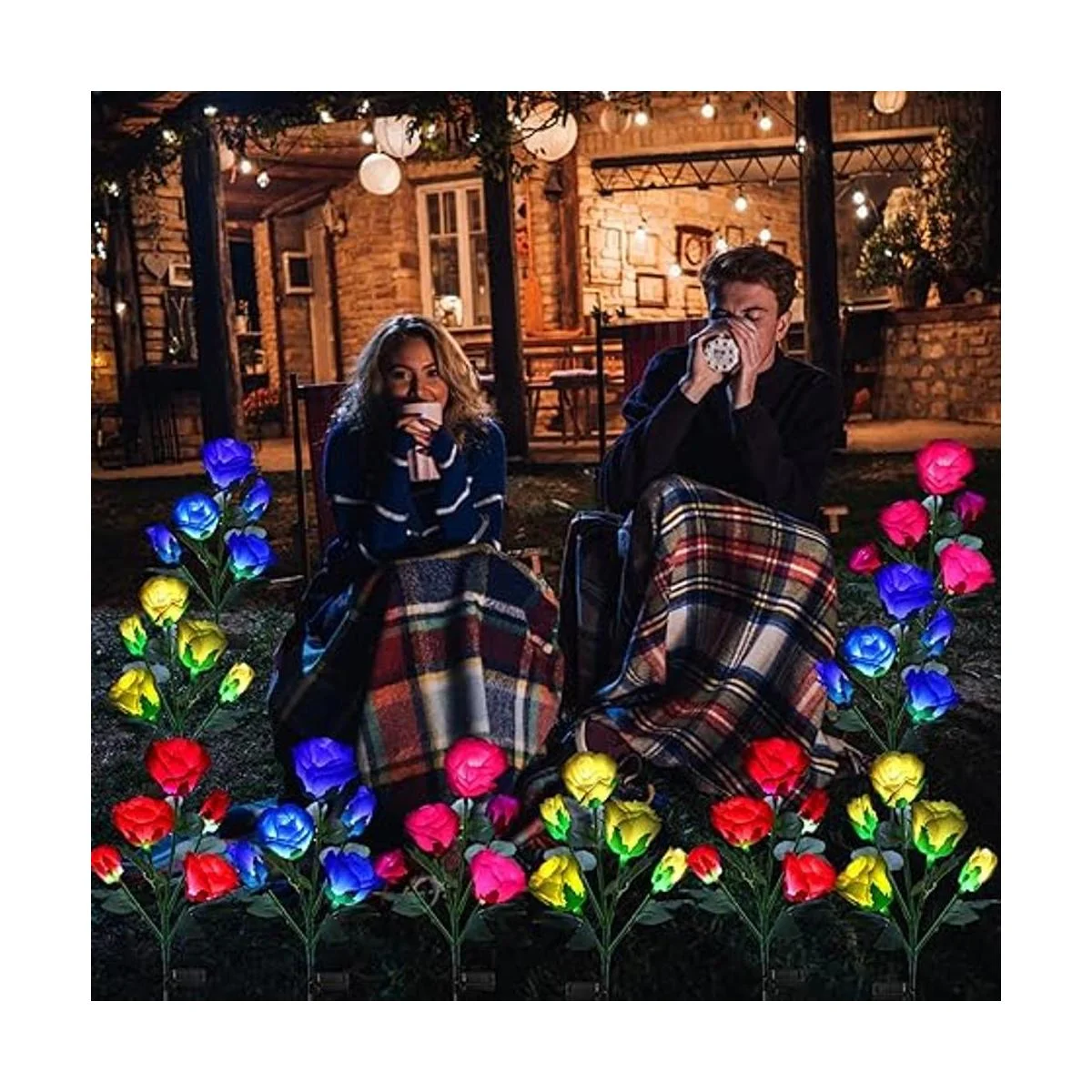 ANGMLN Paquete de 4 luces solares para jardín, 7 luces de rosas que cambian de color, 20 cabezas de rosas para camino, patio, fiesta, boda, día de San Valentín, decoración al aire libre rojo, rosa, amarillo, azul
