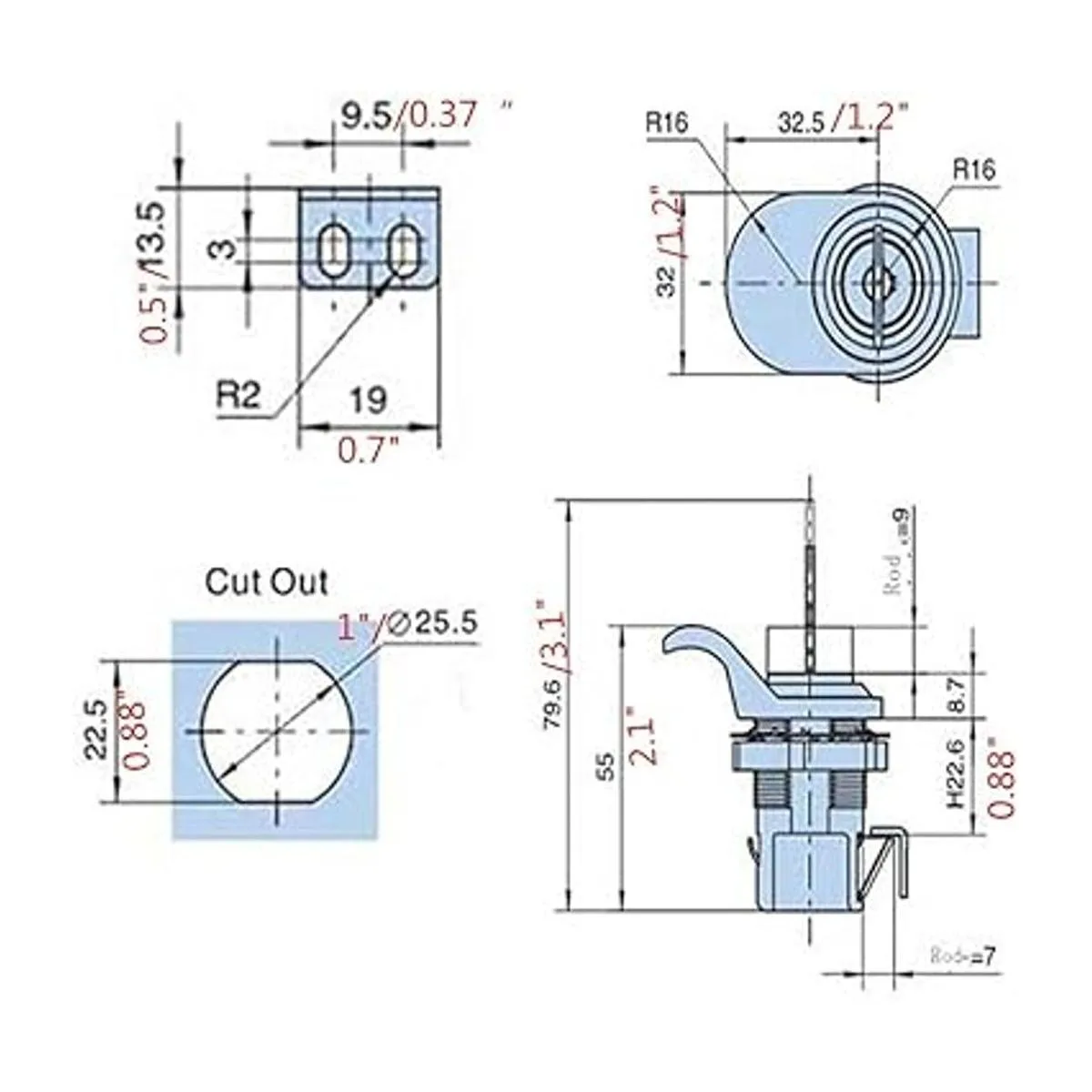 2. Entonces el agujero para el artículo es de aproximadamente 1 pulgada, consulta la figura 4 para obtener dimensiones detalladas de bloqueo.