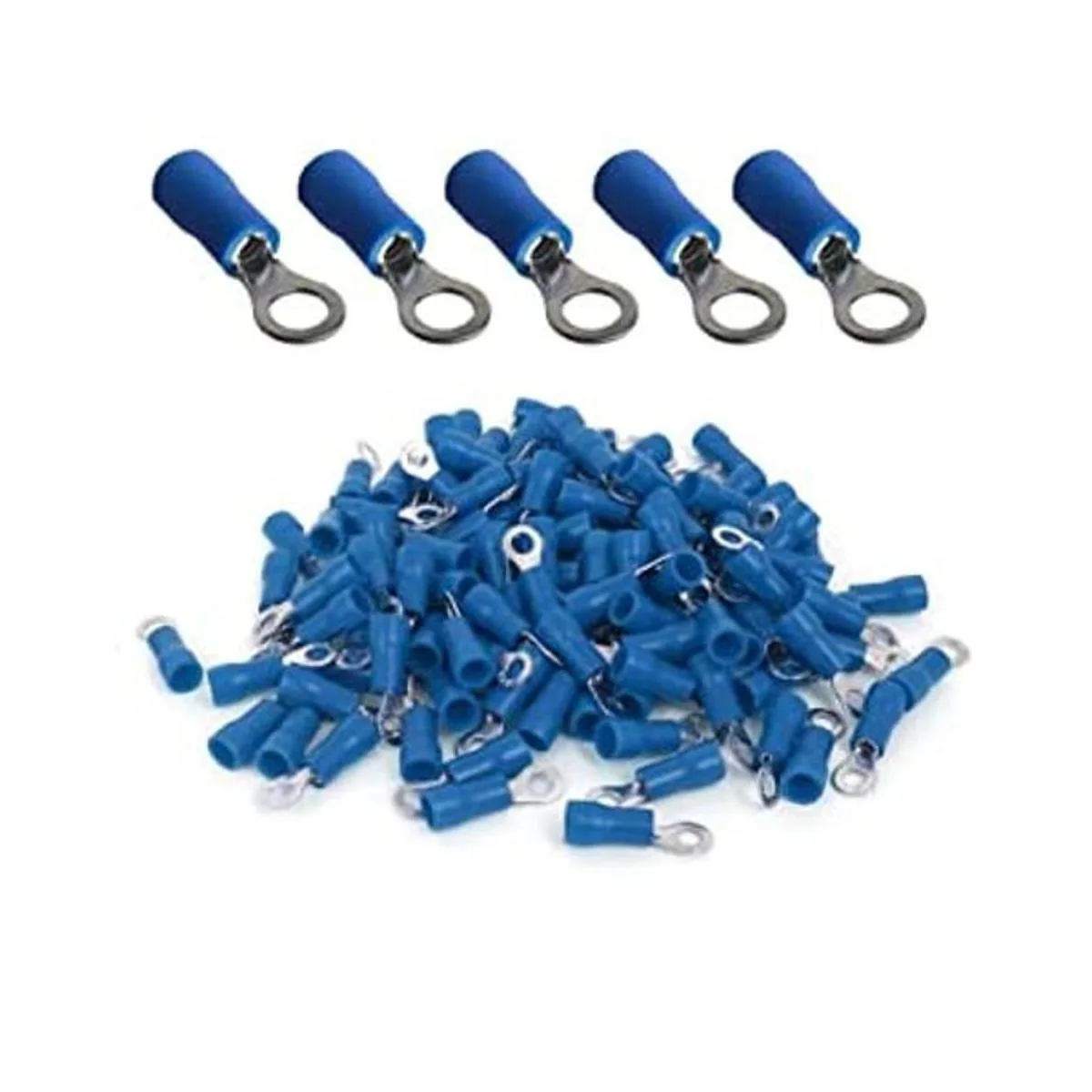 ANGSTROM Terminales de anillo de perno 8, conectores de crimpado eléctricos aislados, 100 unidades 1614 ga azul