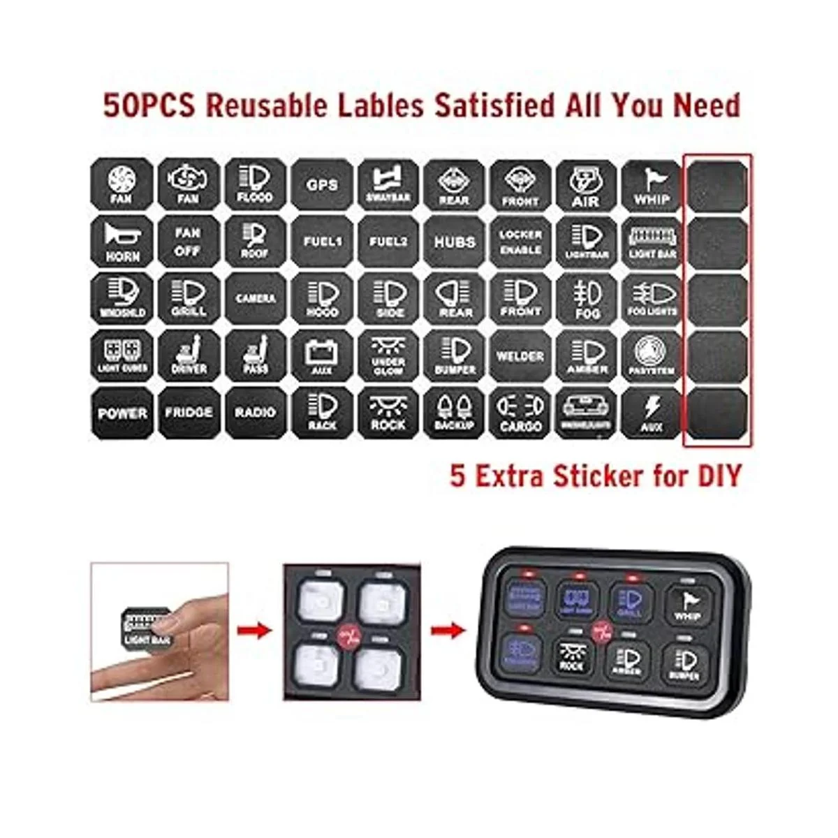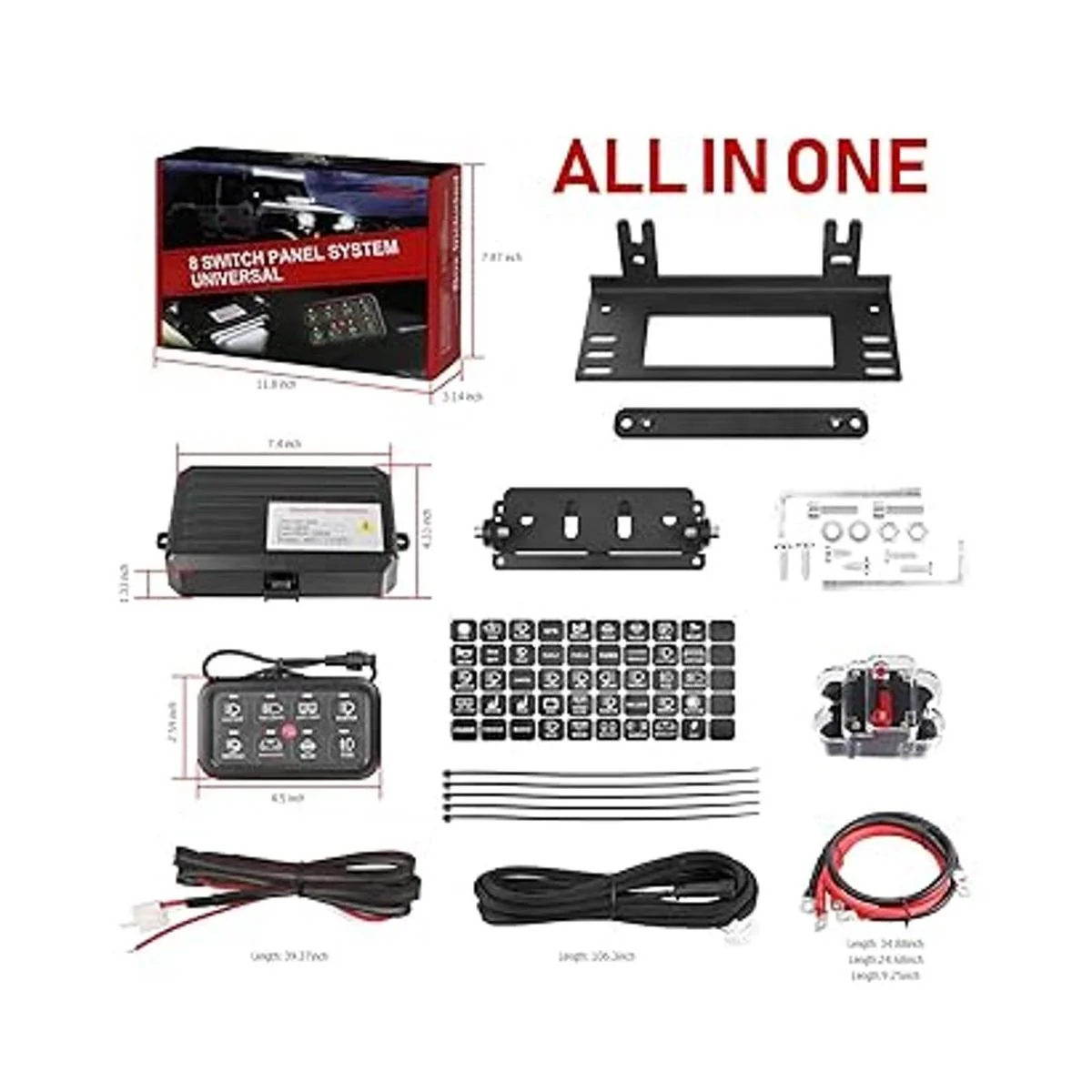 Todo en uno: el paquete contiene todo lo que necesitas para la instalación y el uso. No hay necesidad de comprar otras piezas adicionales. 8 cápsulas de panel de interruptor de banda 50 etiquetas autoadhesivas 3 juegos de soporte de montaje caja de control de interruptor cintas de tornillo cintas de fleje arnés de cableado instrucciones de instalación mejoradas. Excelente servicio en línea 24 horas.