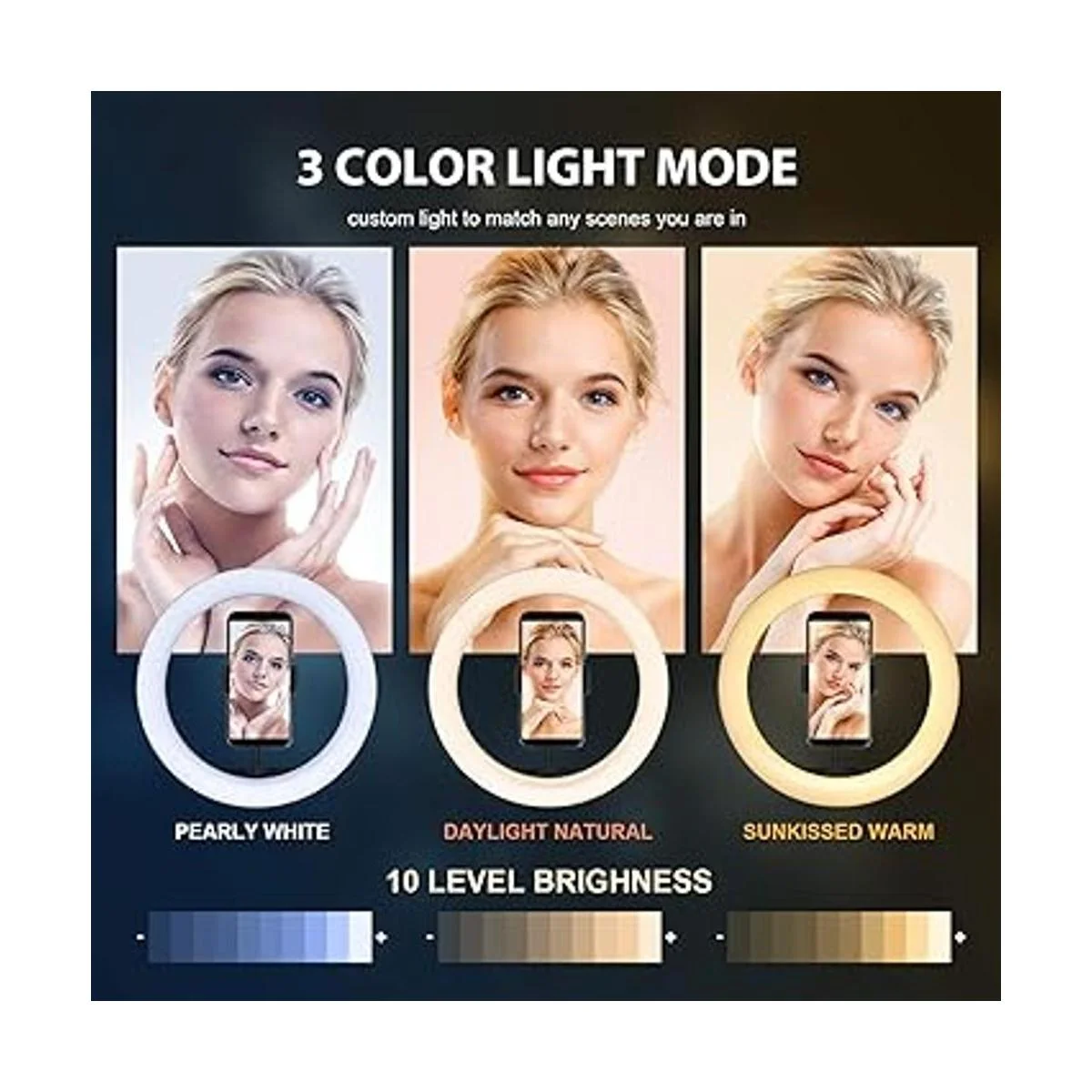 Excelentes efectos de iluminación: la luz del anillo para selfies emitida por 120 LED de alto brillo al instante te hace lucir más joven. Bajo la iluminación, tus ojos serán más brillantes, tu cara será más blanca y hermosa, tu maquillaje será más encantador y generoso. La luz del anillo es lo suficientemente brillante como para iluminar toda la zona del tema sin hacer un deslumbramiento.