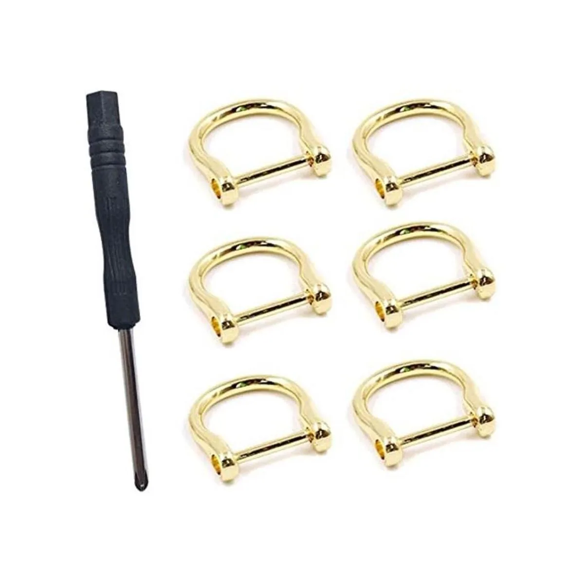 Anillo de metal en D con tornillo en forma de U, anillo de metal con cierre en forma de D, para el reemplazo de monedero de cuero, ancho interior 0.709 in, tono dorado