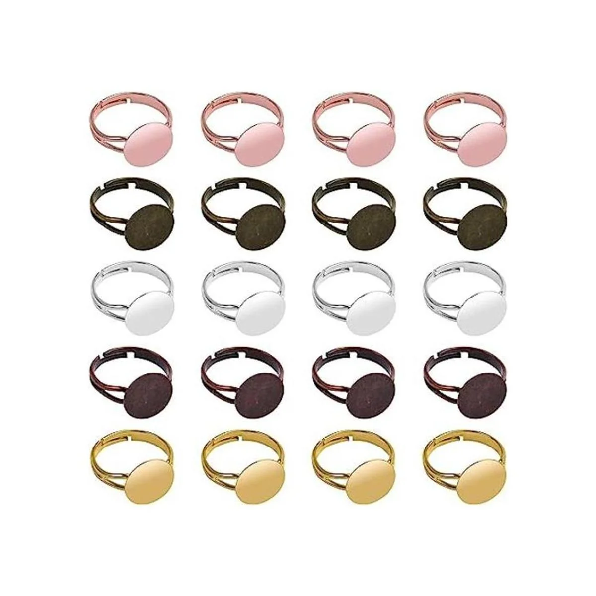 Anillos en blanco, 20 piezas de base de anillo ajustable en blanco, biseles planos y redondos, componentes para hacer manualidades de joyería