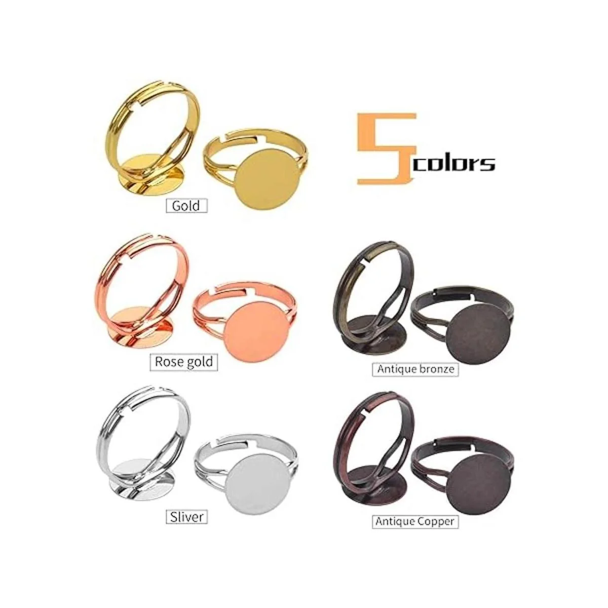 5 colores: plata, oro rosa, oro, rojo antiguo, cian antiguo para que elijas hacer tus hermosos anillos.