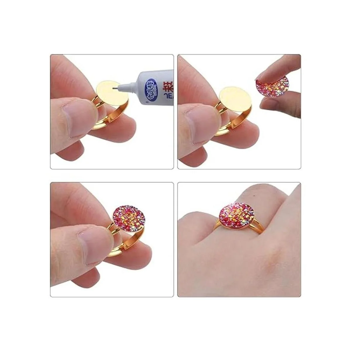 Amplio uso: puedes añadir otros cabujones, cameo, sellos, grabados, letras de pegamento, logotipos, resina, fotos de piedras preciosas o algunas pequeñas cuentas en la base para hacer joyas hermosas.