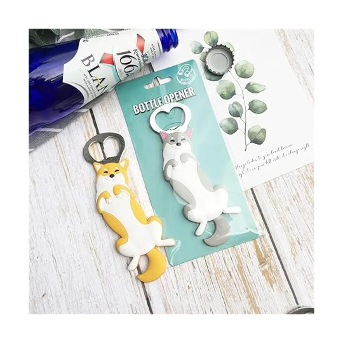 Abridor con forma de perro Shiba Inu, ergonómico dimensional, fácil de abrir botellas.