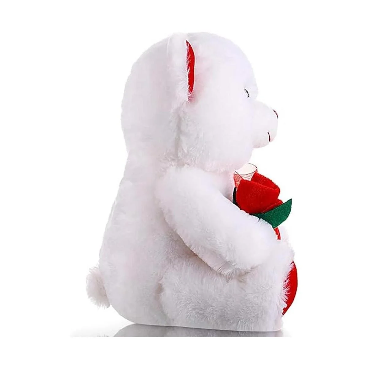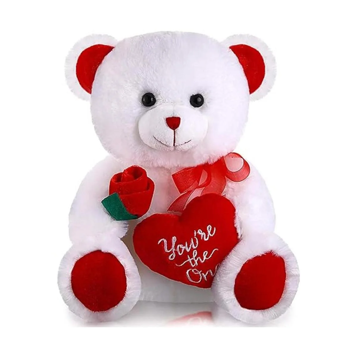 Diseño romántico: con una rosa roja y un corazón en ambas manos, el bonito oso de peluche con pies y orejas rojas, es un regalo dulce para expresarle tu amor a tu pareja, novia, esposa, marido.