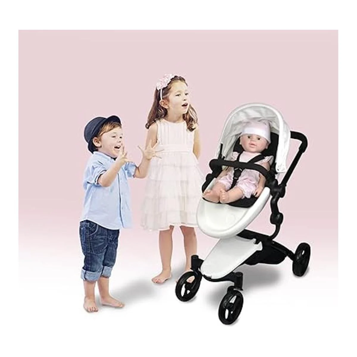 Anivia Cochecito de muñeca de lujo para muñecas de 18 y 20 pulgadas, cochecito de muñeca con toldo plegable, ruedas silenciosas y 2 cestas de almacenamiento, fácil de montar, color negro