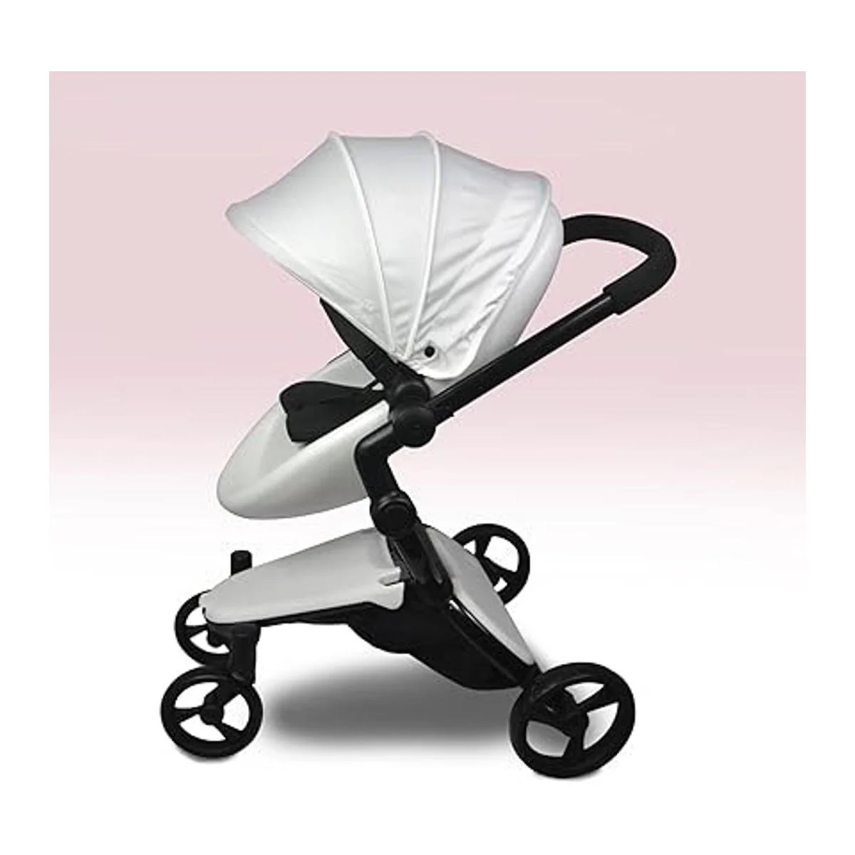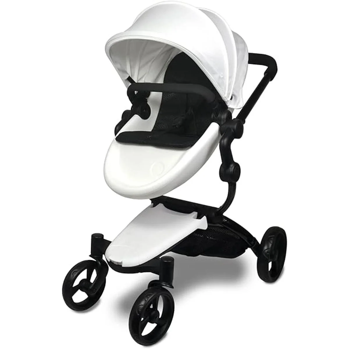1. Cochecito de muñeca con tubos de aluminio negro y tela de tela con impresión. Características en diseño patentado y clásico color negro blanco.