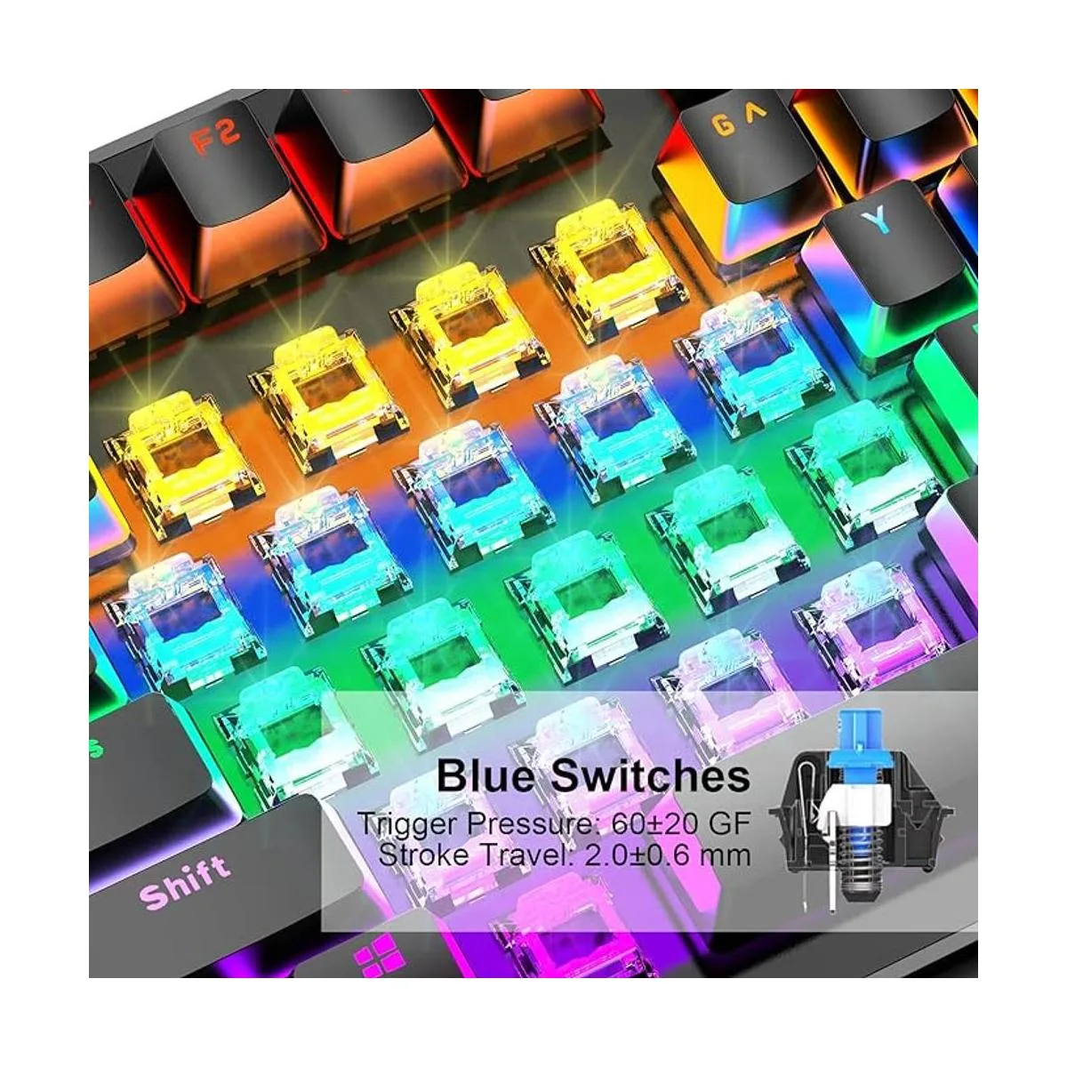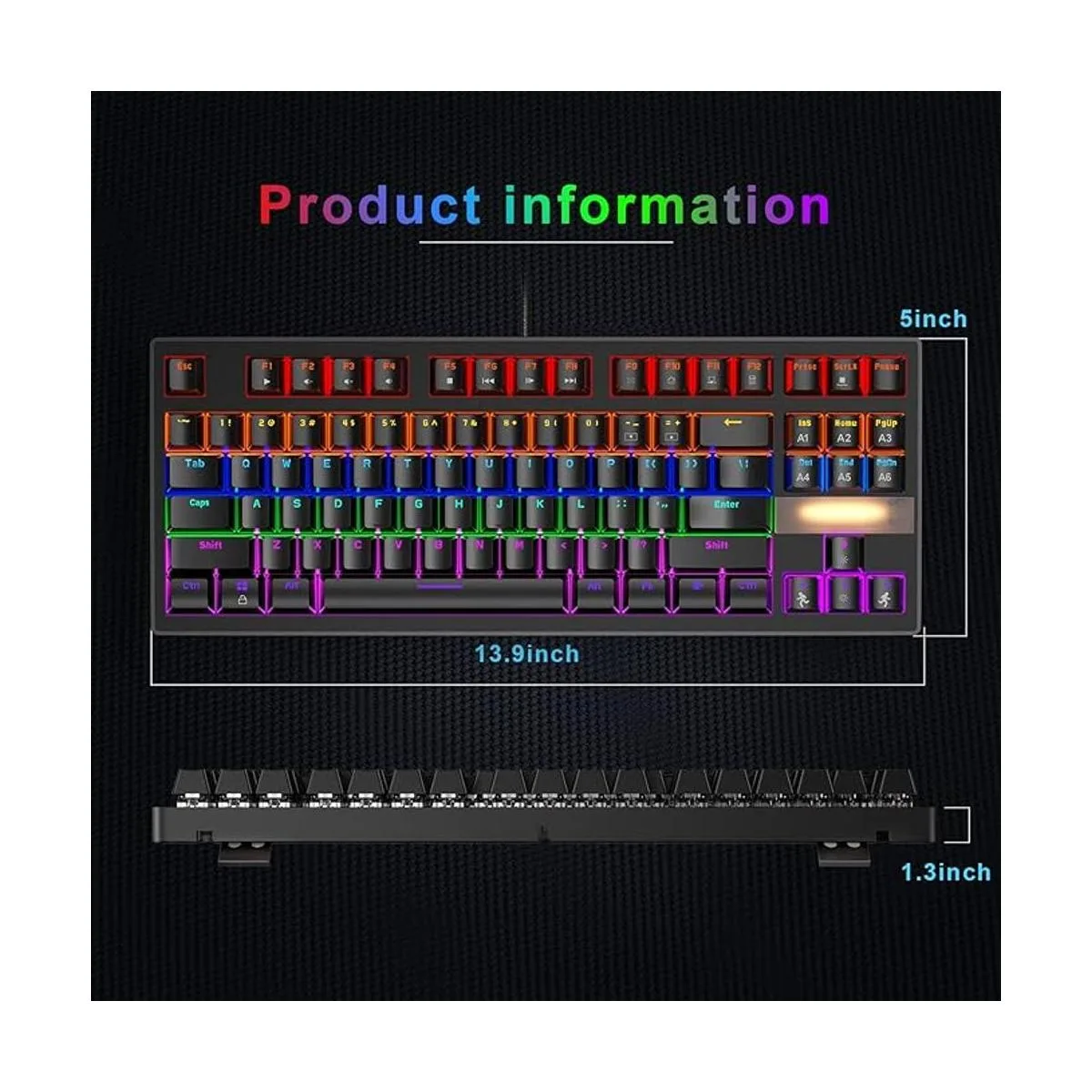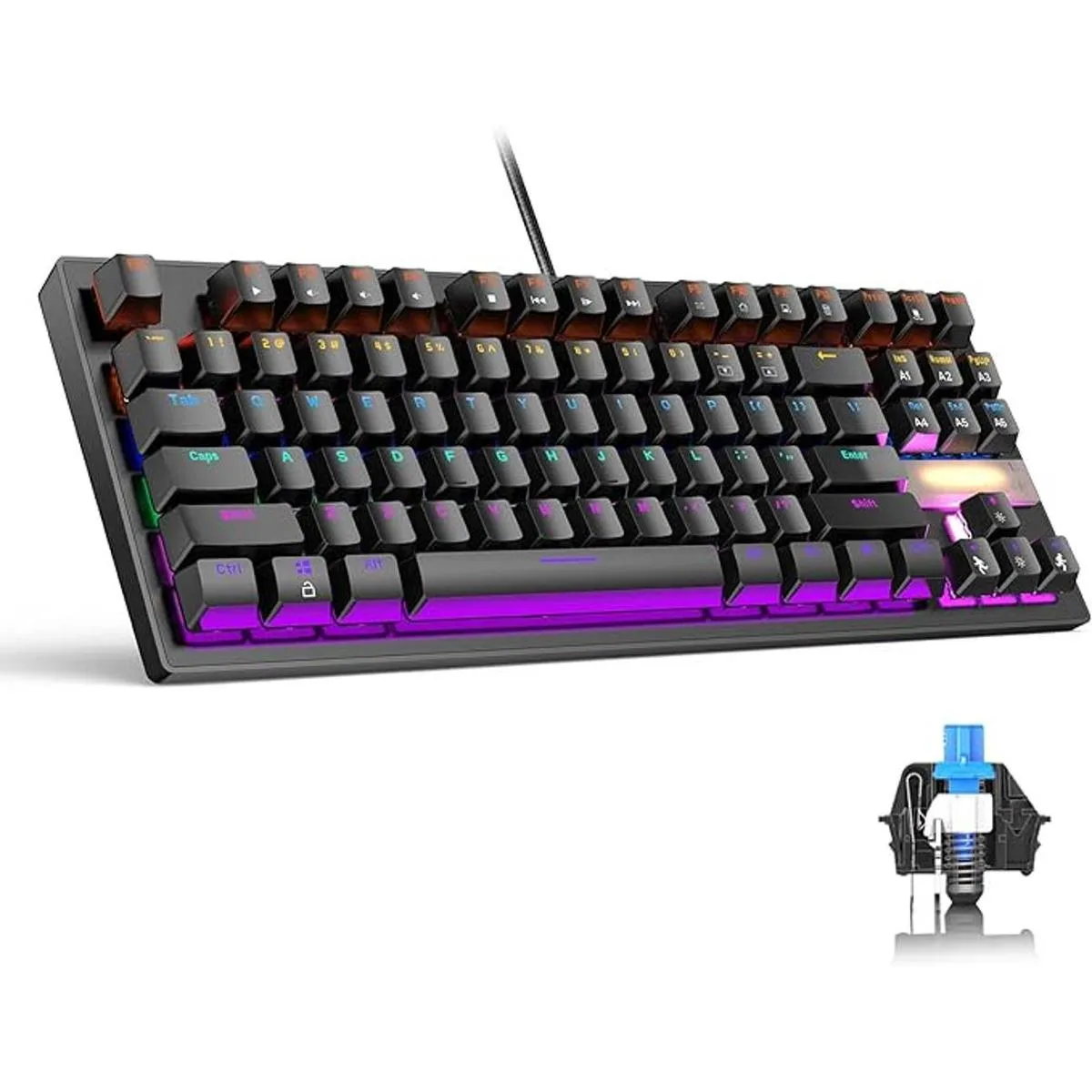 Anivia Teclado mecánico verdadero para juegos, teclado USB clásico con cable con interruptores azules, teclado impermeable de 87 teclas para PC, portátil, PS4, PS5, Xbox, RGB arcoíris rojo retroiluminado