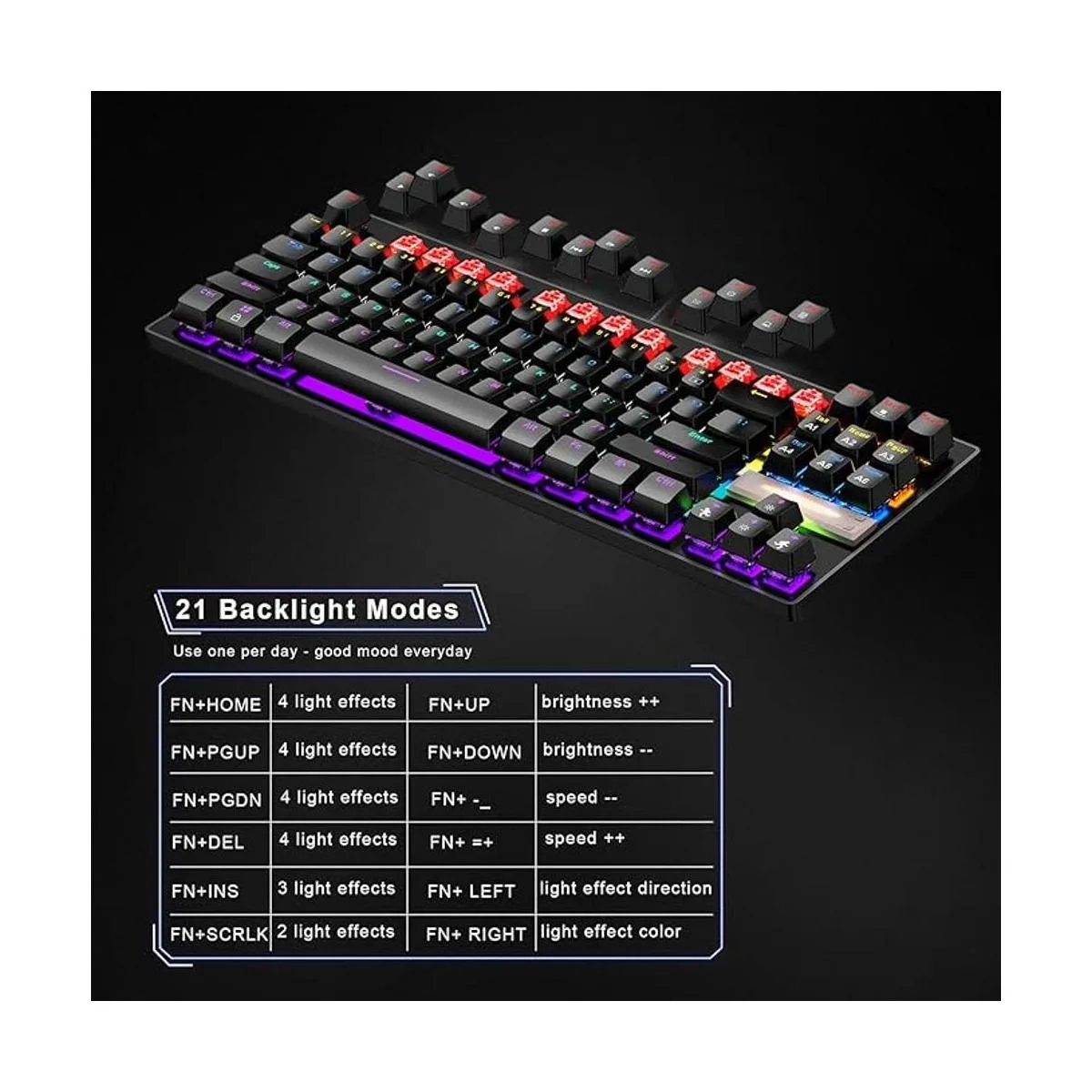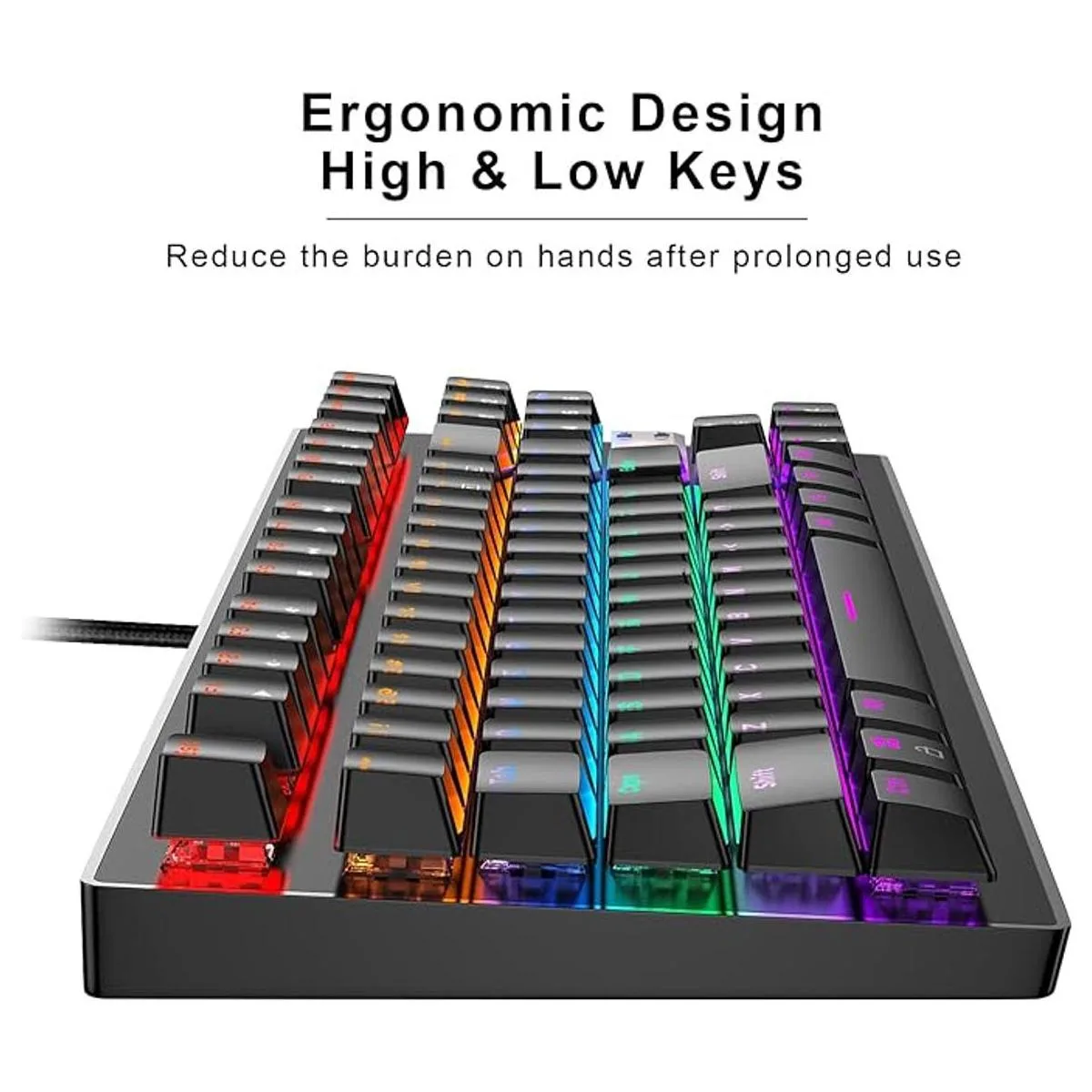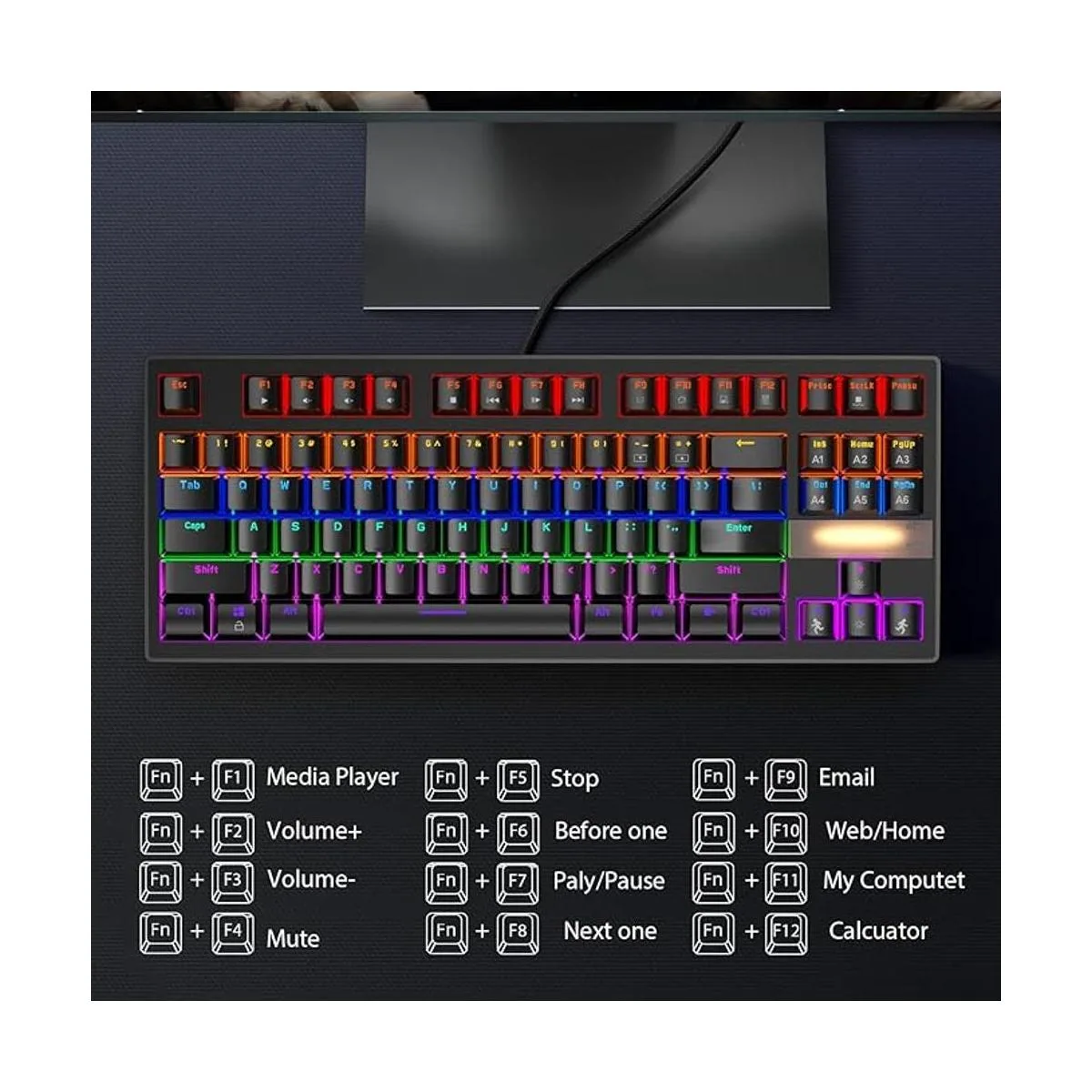 Anivia Teclado mecánico verdadero para juegos, teclado USB clásico con cable con interruptores azules, teclado impermeable de 87 teclas para PC, portátil, PS4, PS5, Xbox, RGB arcoíris rojo retroiluminado