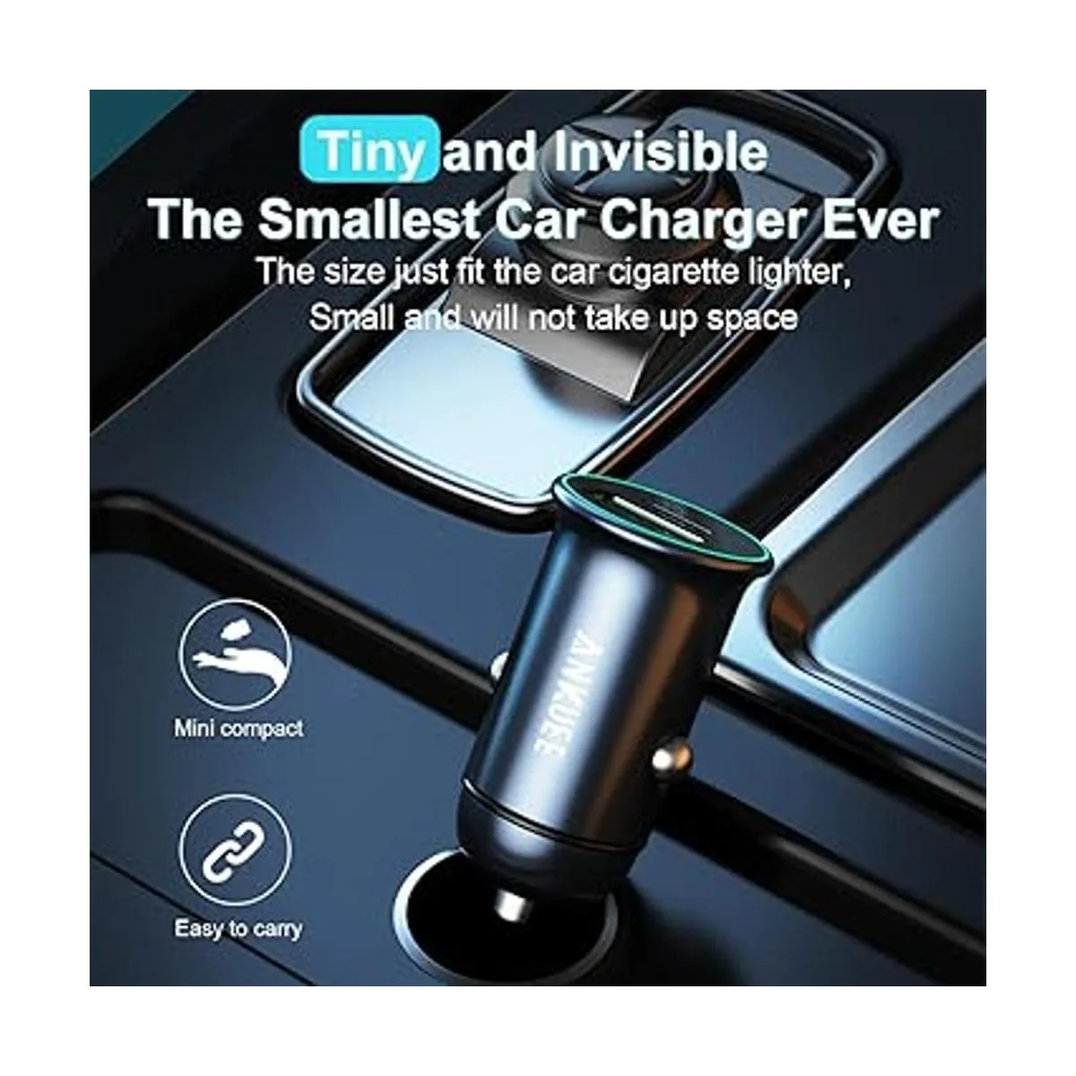ANKUEE Adaptador de cargador de coche USBC, doble puertos, carga rápida PD 60W QC3.0 30W Mini encendedor de cigarrillos totalmente metálico, cargador USB universal para iPhone 13Pro Max12XS Max11 Pro, Samsung, accesorios de coche