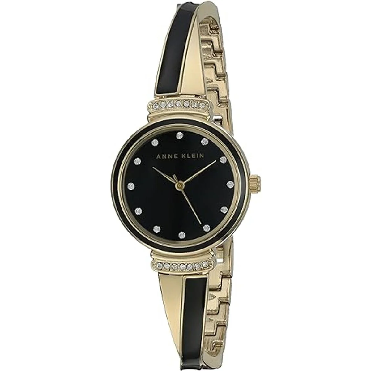 Anne Klein AK2216BKGB Reloj de pulsera de cristal premium acentuado dorado y negro para mujer