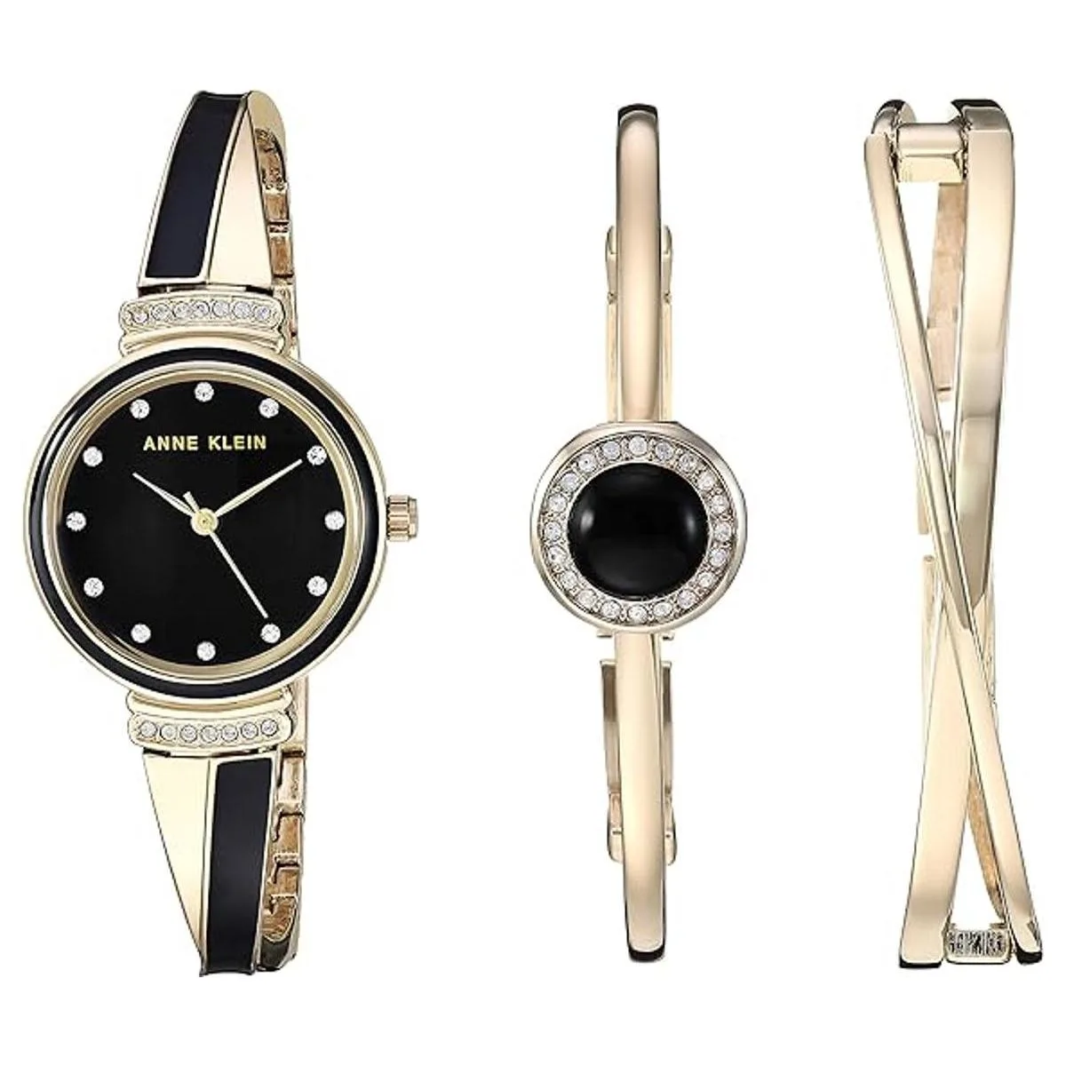 Anne Klein Juego de reloj y brazalete acentuado de cristal para mujer