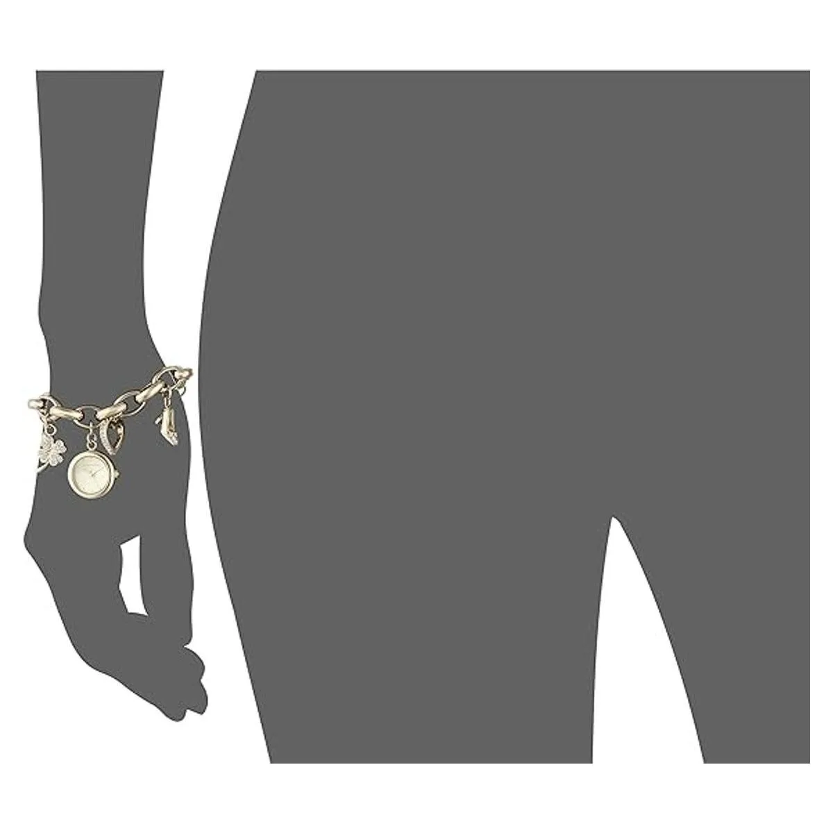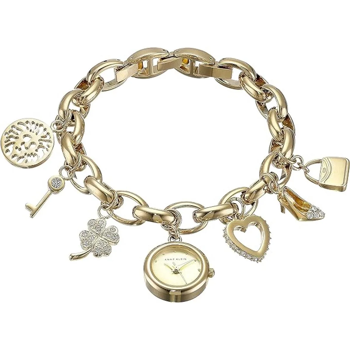 Anne Klein Reloj de pulsera con dije en tono dorado con cristal de alta calidad para mujer, 107604CHRM, Brazalete dorado de dijes con esfera dorada, talla única , 107604CHRM