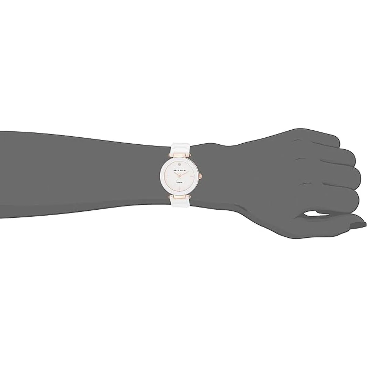 Anne Klein Reloj de pulsera de cerámica con diamantes auténticos para mujer