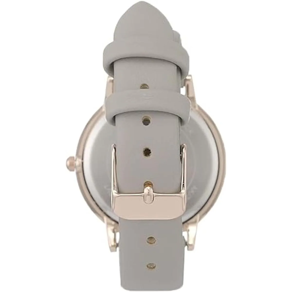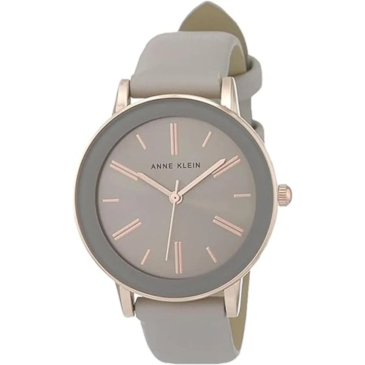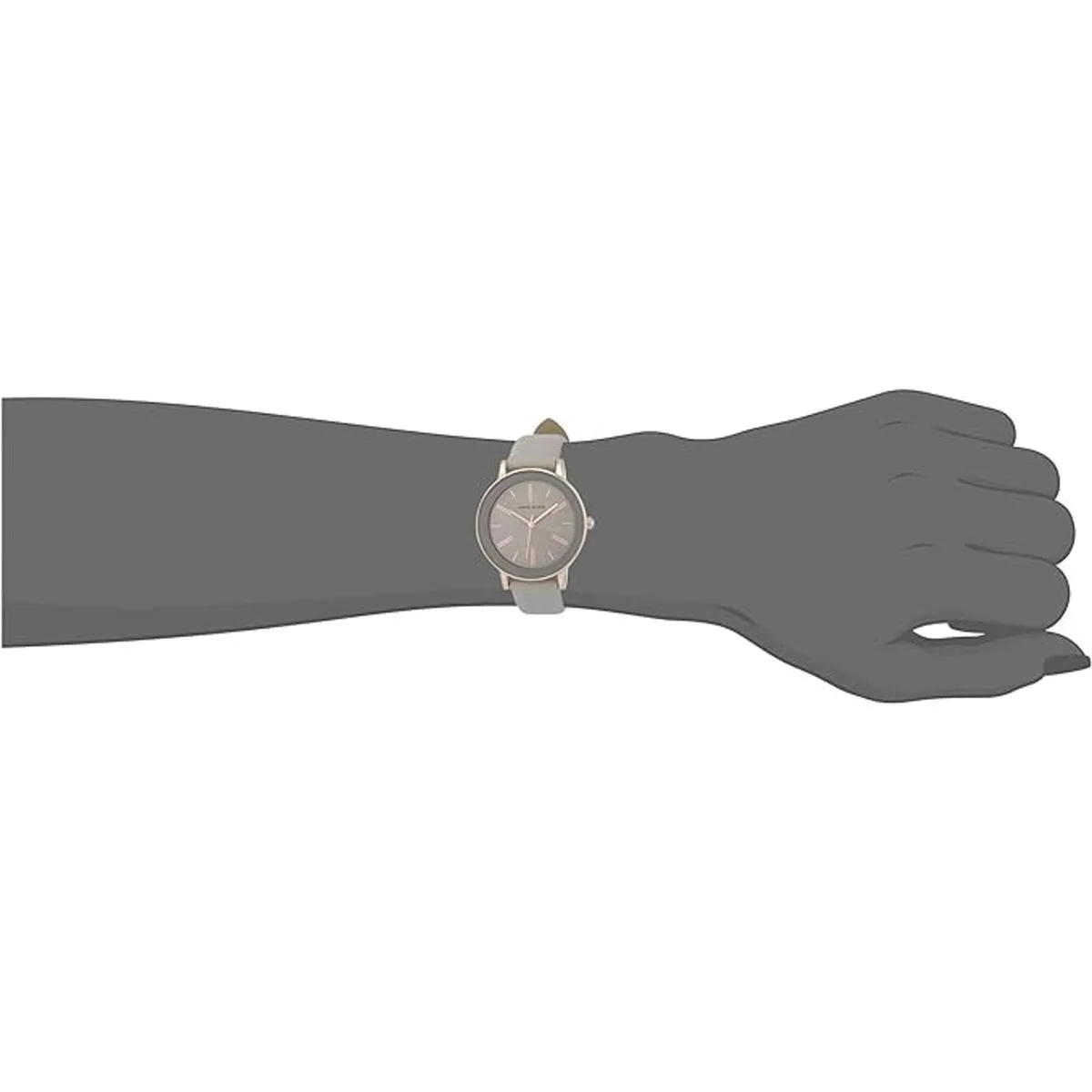 Esfera de rayos solares gris pardo con manecillas e indicadores en tono oro rosa
