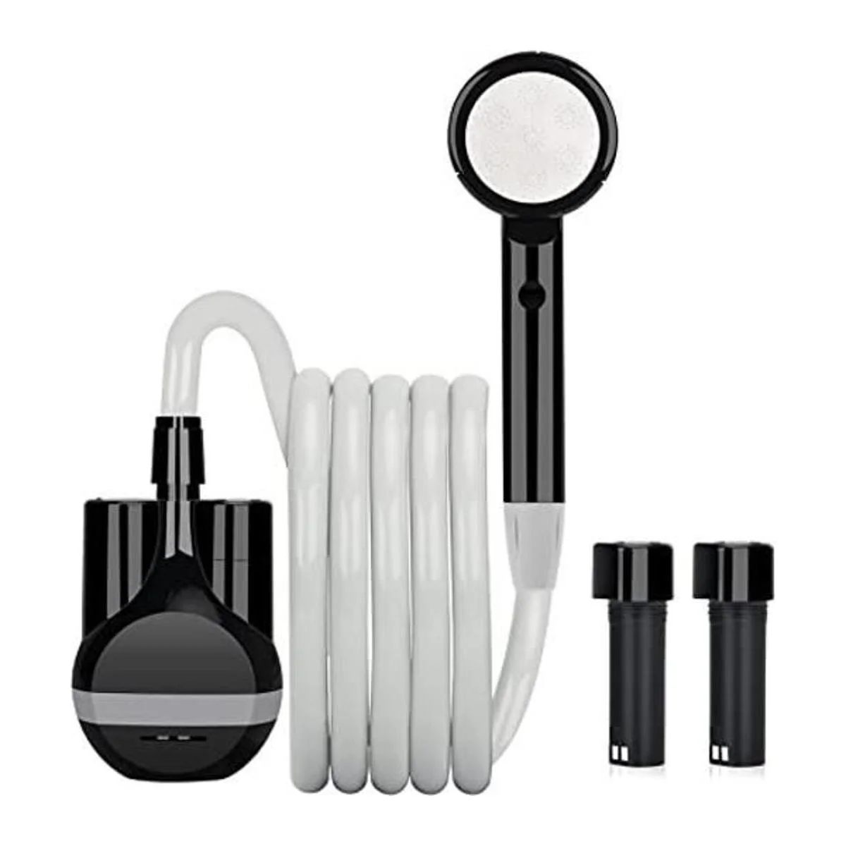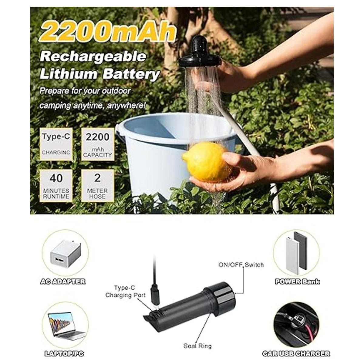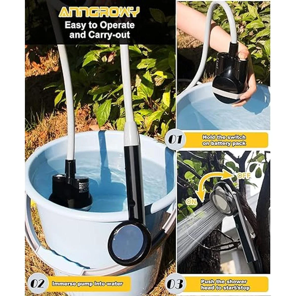 anngrowy Ducha portátil para campamento, ducha al aire libre, bomba de ducha de campamento, cabezal de ducha eléctrico recargable portátil para limpieza de mascotas, playa, senderismo, viajes, funciona con pilas, 1 año de garantía