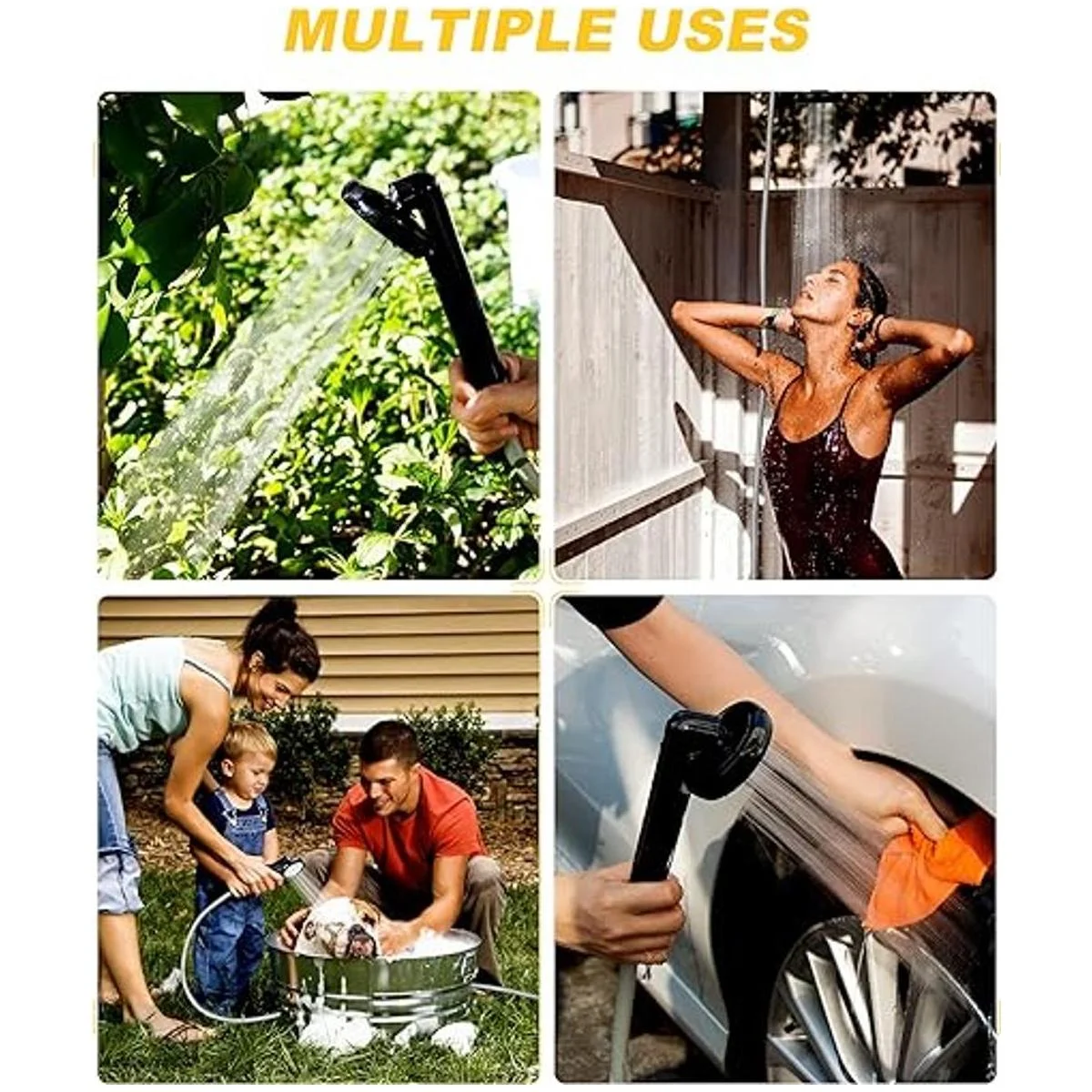 Cabezal de ducha integrado de encendido/apagado mejorado: con superficie plana de acero inoxidable y agujero de salida de agua más pequeño mejorado, el cabezal de ducha portátil annrowy es más fácil de limpiar y difícil de acumular suciedad como el cabezal de ducha tradicional. Actualiza la salida de agua para hacer que el flujo de agua sea más fino y suave, y el diseño de válvula de encendido/apagado integrado en el cabezal de ducha de campamento para garantizar que no se desperdicie agua y obtienes la mejor ducha al aire libre.