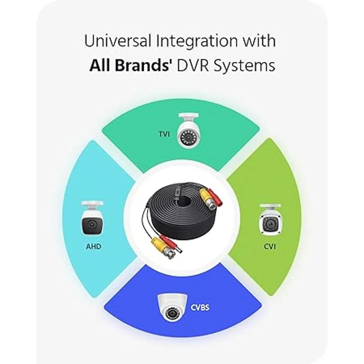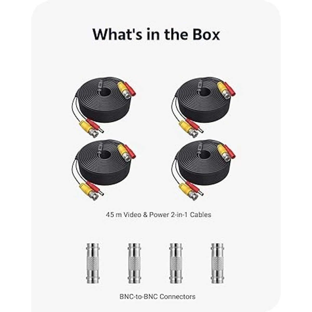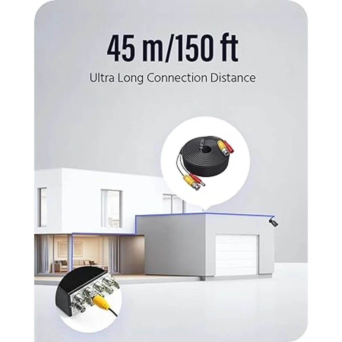 ANNKE 4 Cable de alimentación de video de 150 pies para sistema de cámara de seguridad, cable de cámara de vigilancia BNC todo en uno para instalación de sistema CCTV de seguridad DVR, 4 conectores BNC incluidos