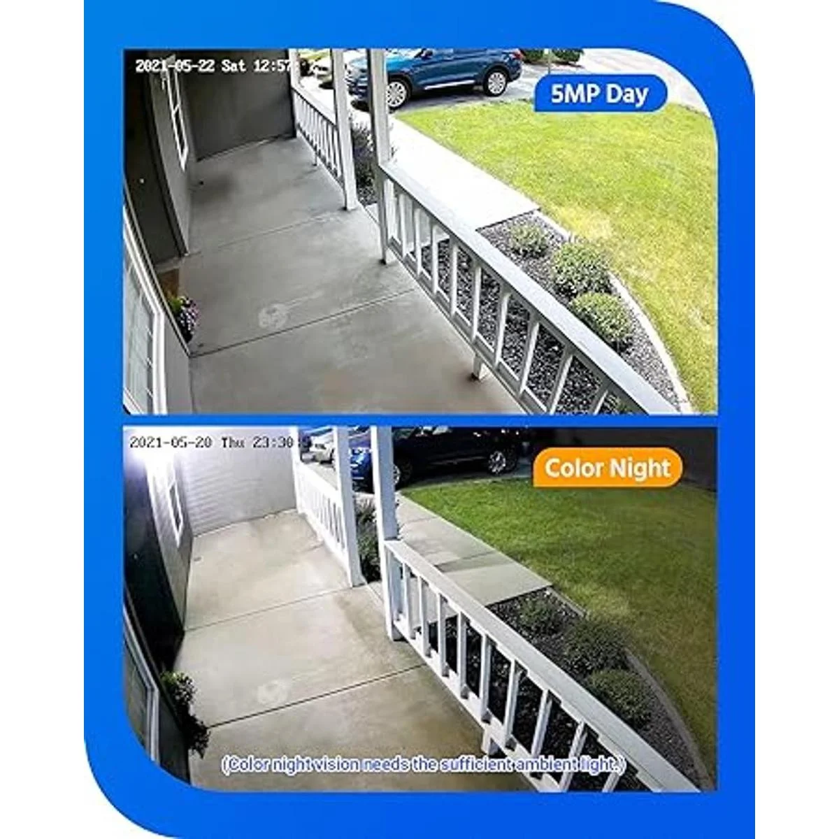 True 5MP Super HD Image Day Night The PoE security IP camera, with OmniVision sensor EXIR 2.0 tech, captures crystalclear 5MP Super HD images day and color night vision with the ambient light. 120 dB WDR 3D DNR of ip camera outdoor help shoot crisp images without noise in all light conditions.