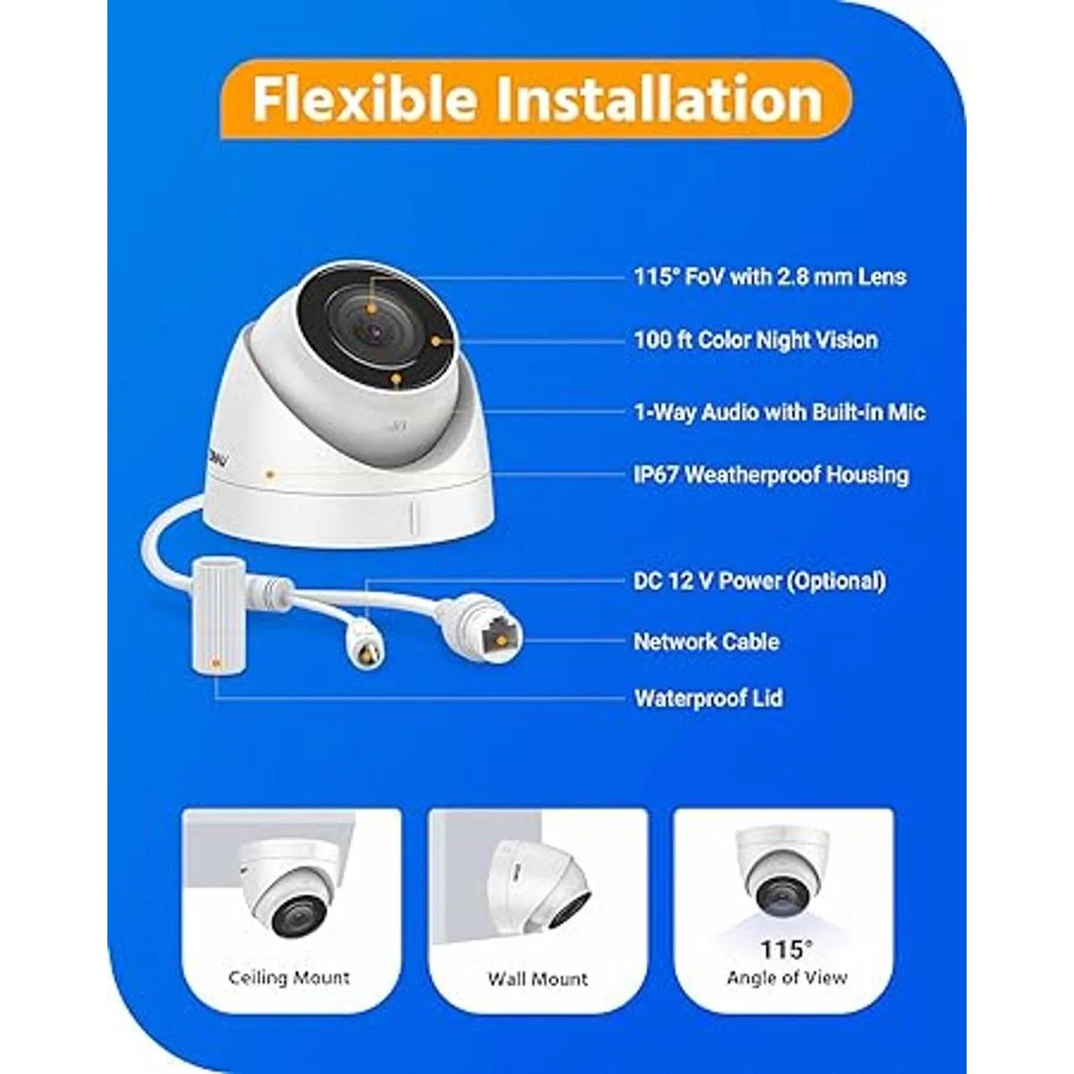 ANNKE C500 5MP PoE Turret Security Camera wAudio, 100 ft EXIR 2.0 Color Night Vision, H.265 PoE IP Outdoor Camera, Support RTSP, IP67 Waterproof, Remote Access, Support Up to 256GB Micro SD