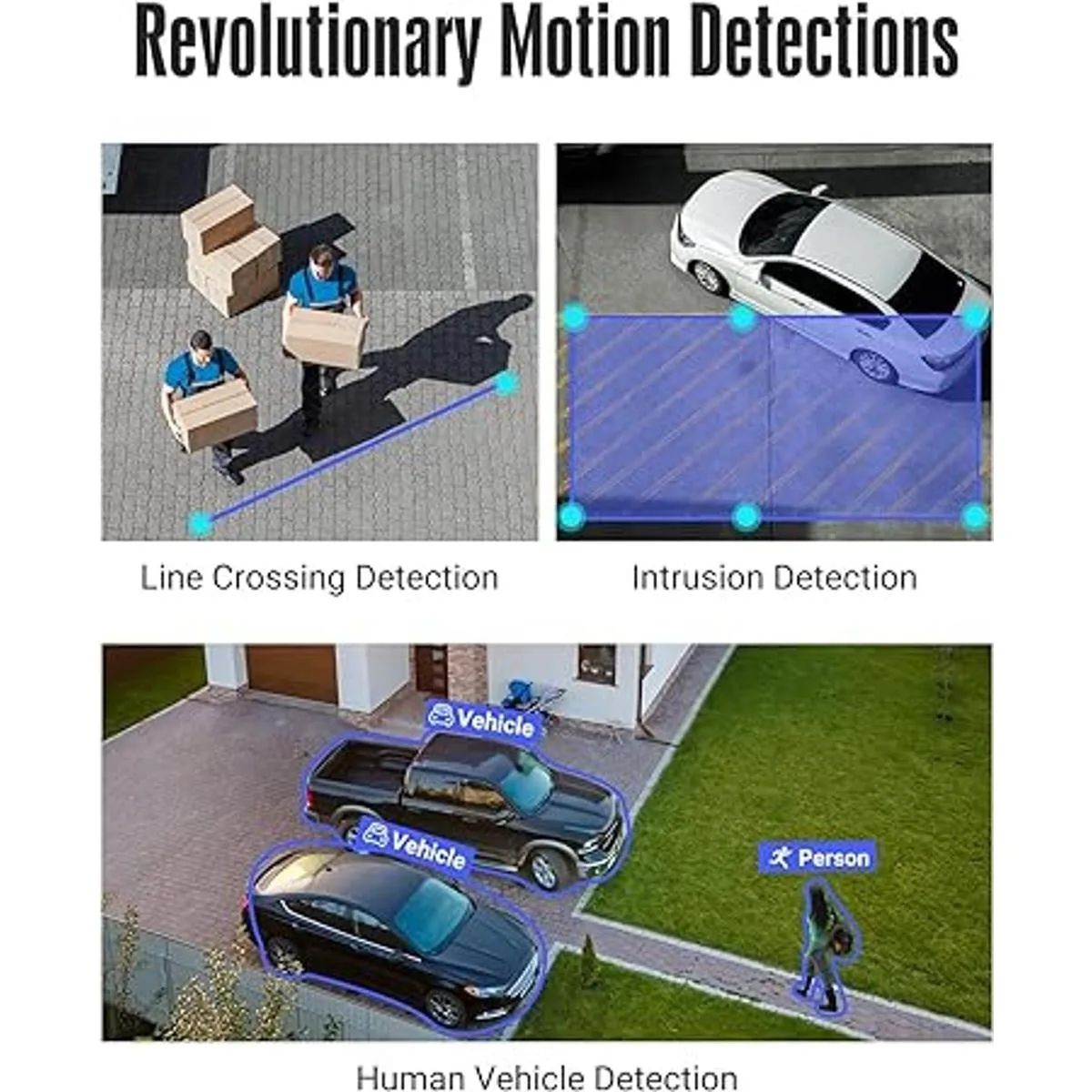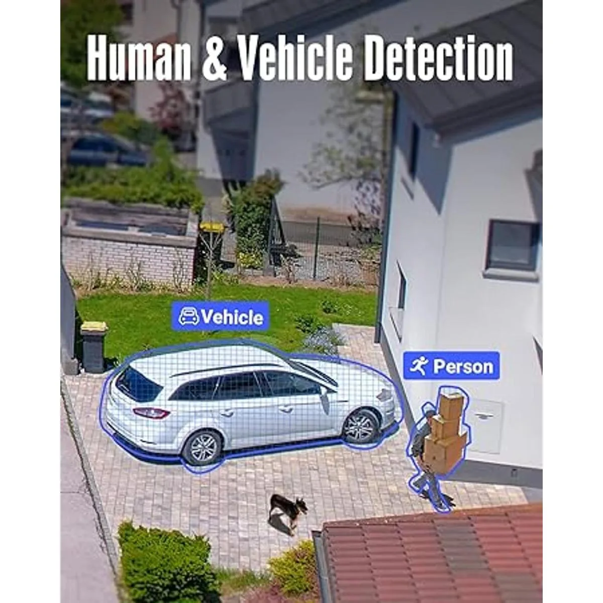 Innovadora detección humana y vehículo: al configurar la detección humana y del vehículo, recibirás alertas de detección de movimiento solo cuando las personas y los vehículos estén en el marco. Minimiza las alertas no deseadas activadas por insectos, animales, hojas, etc.
