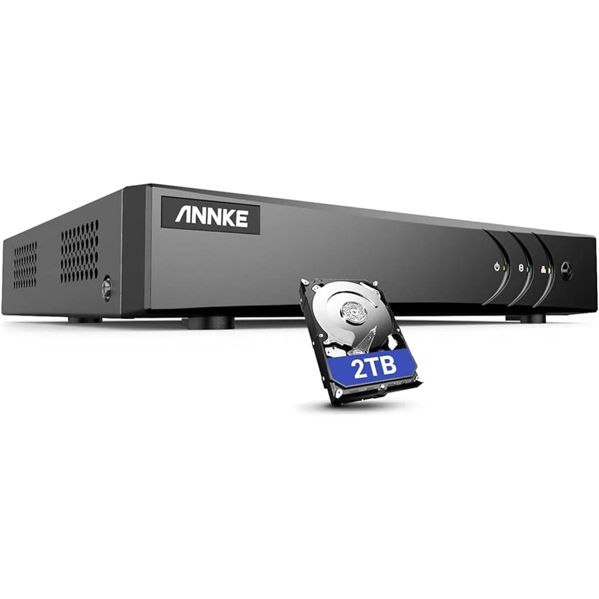 ANNKE DVR AI 5 en 1 de 5 MP Lite de 8 canales con detección de humanos y vehículos para cámara de seguridad marítima y disco duro de 2 TB, H.265, salida HDMI, escaneo rápido de código QR y control remoto de fácil visión para sistema de cámara CCTV en el hogar