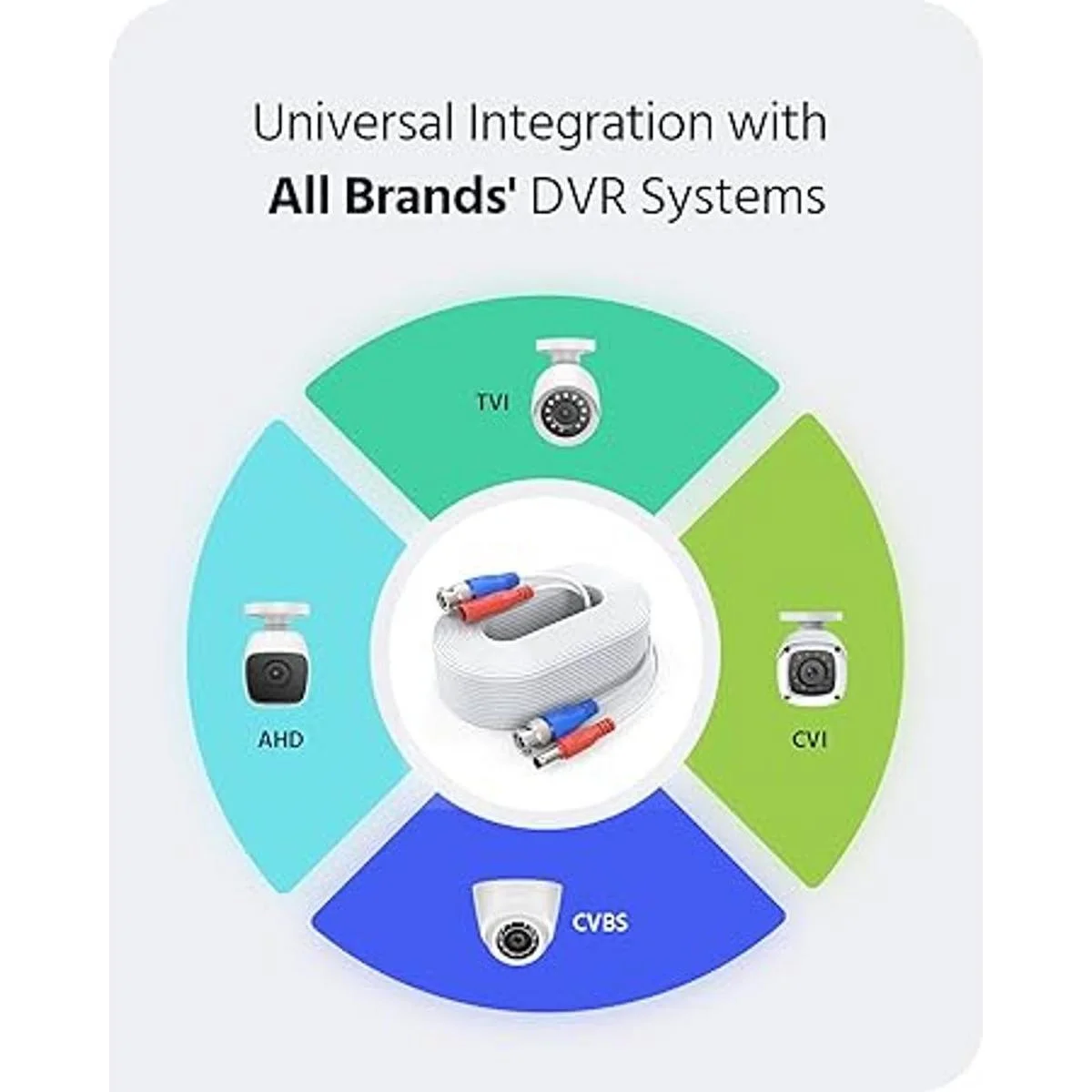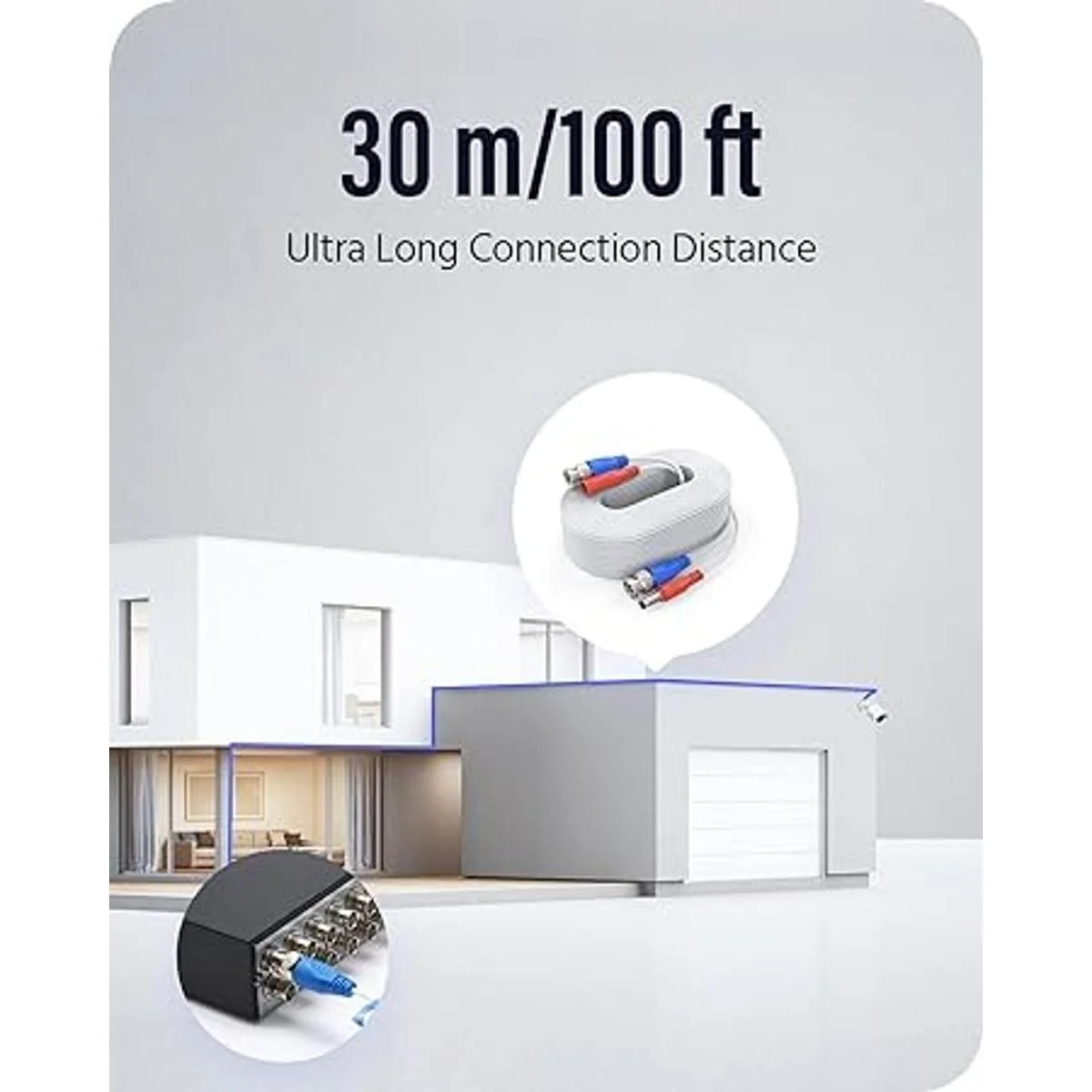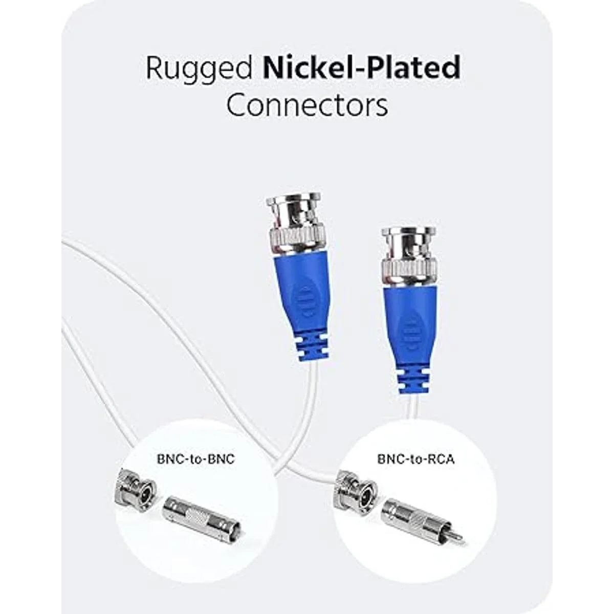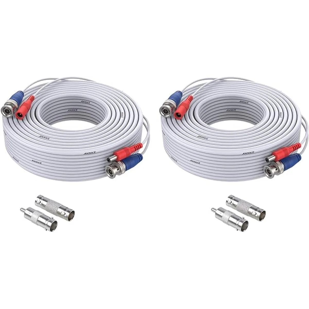 ANNKE Paquete de 2 cables de alimentación de vídeo BNC todo en uno de 98.4 ft, cable de extensión BNC para cámara CCTV DVR sistema de seguridad con 2 conectores BNC y 2 adaptadores RCA color blanco