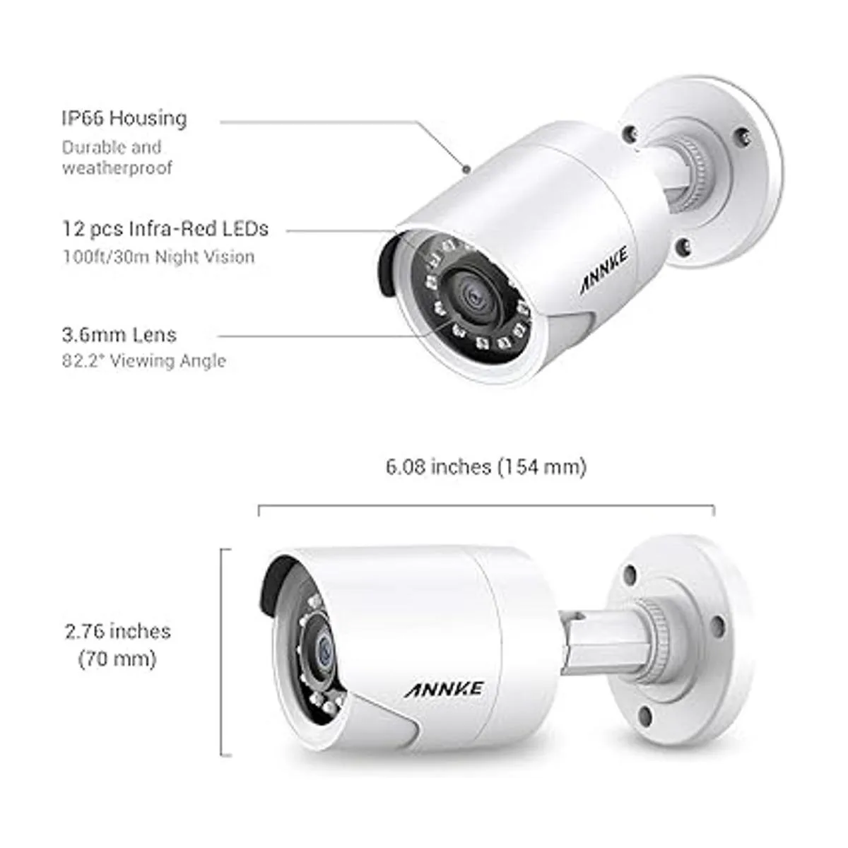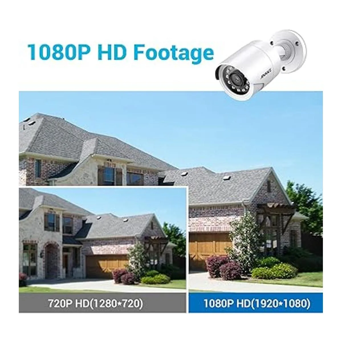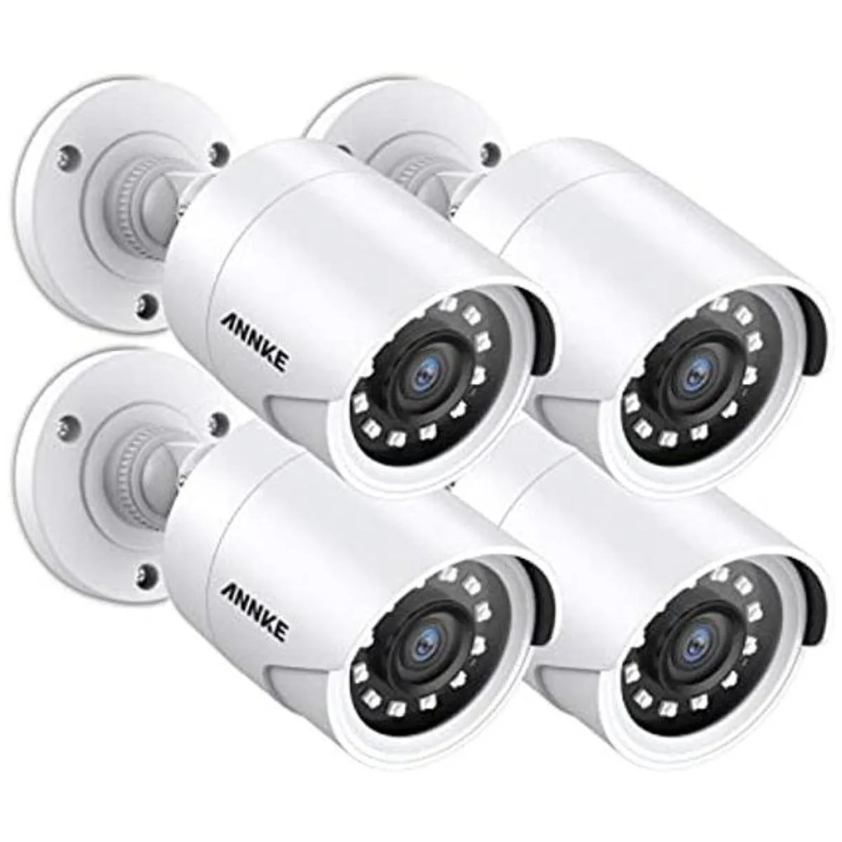 ANNKE Paquete de 4 kits de cámaras de seguridad con cable de 2.0MP 1080P 1920TVL, cámaras CCTV para exteriores, visión nocturna infrarroja, carcasa resistente a la intemperie, cámara de seguridad de vigilancia doméstica