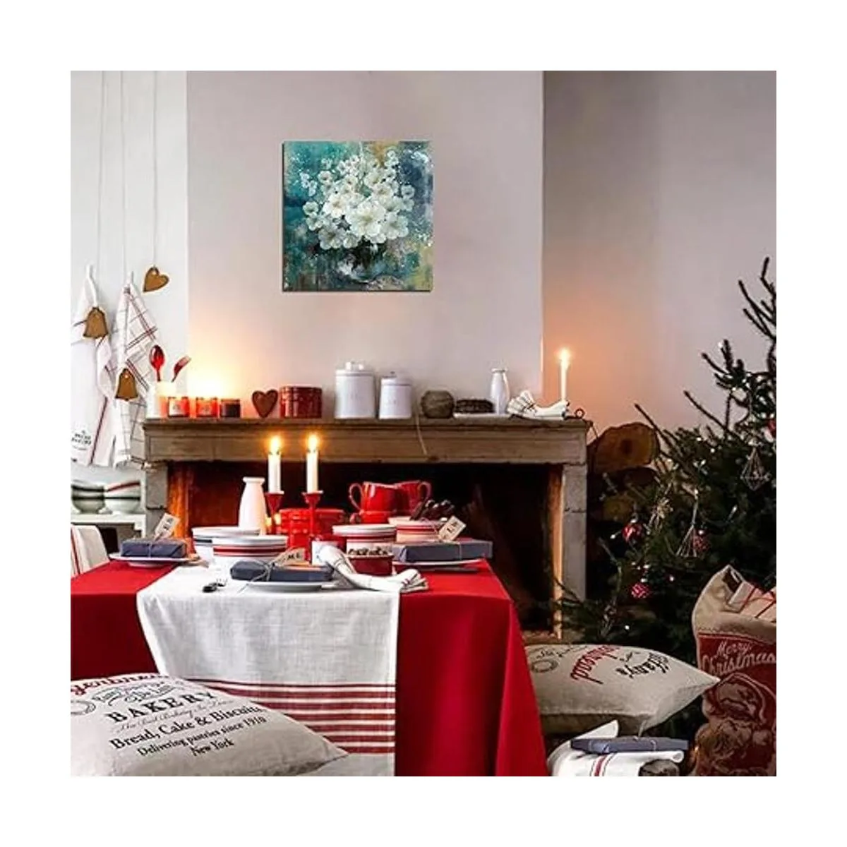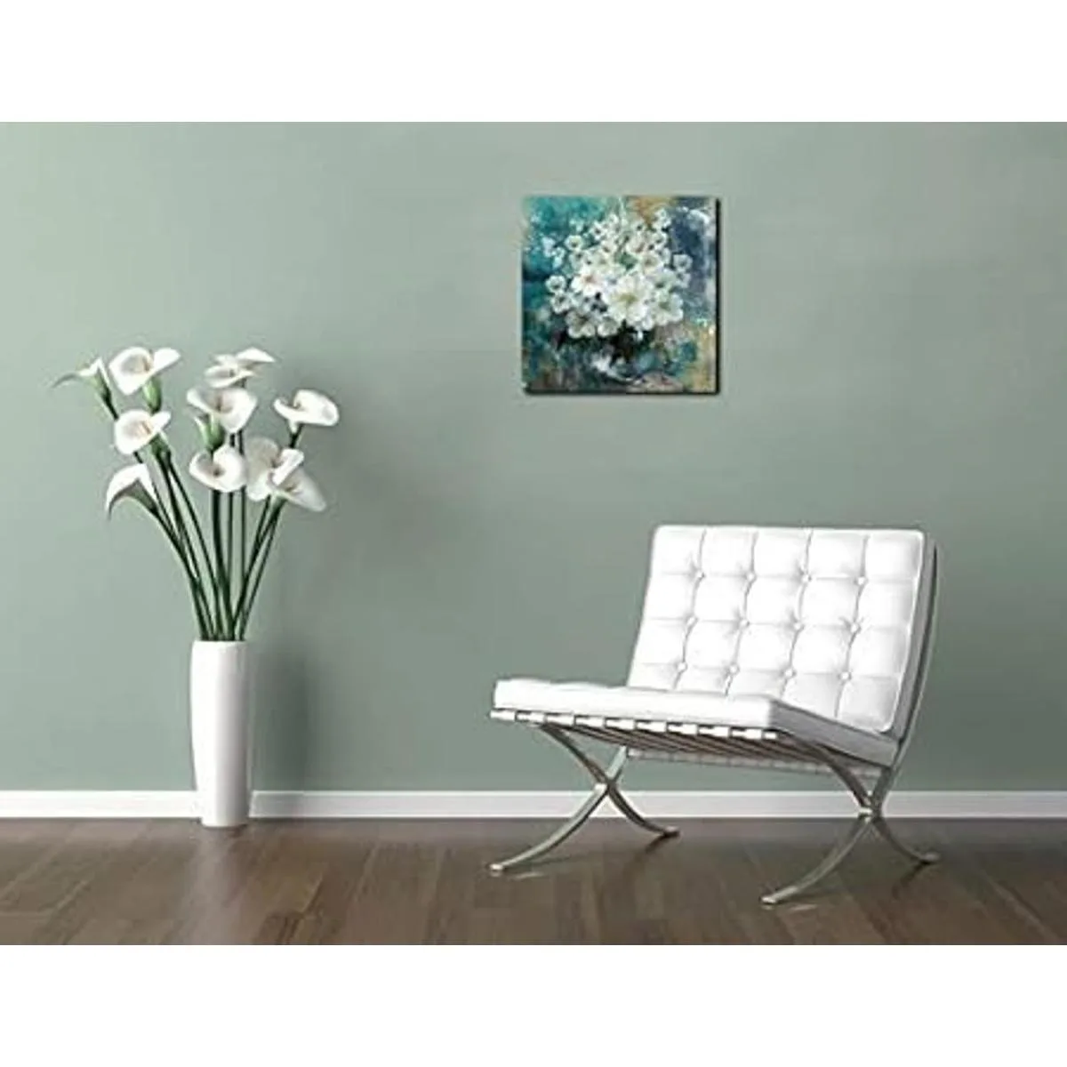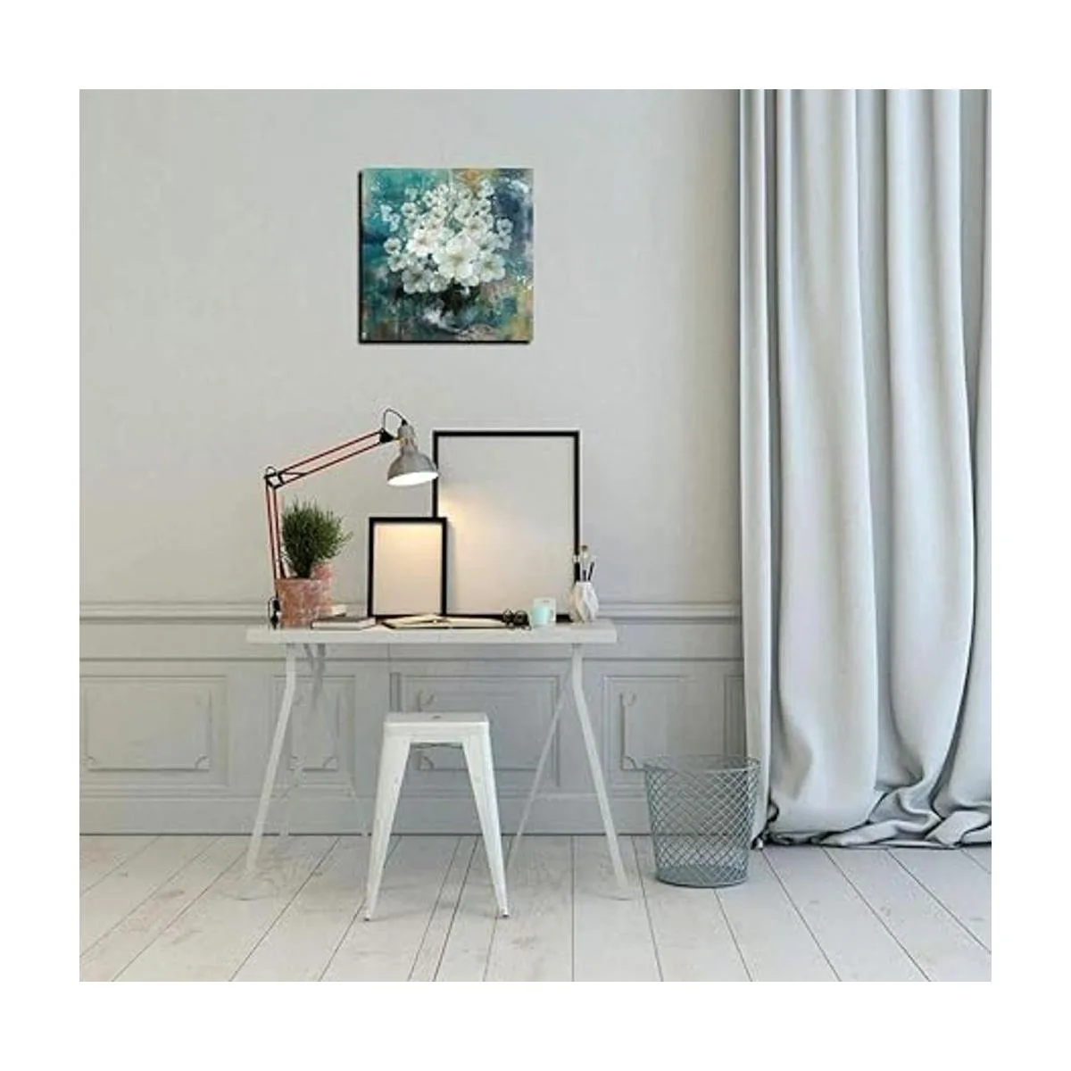 Arte de pared de flores blancas: imagen floral para sala de estar, dormitorio, baño, comedor, cocina, oficina, hogar, habitación de invitados, cuarto de niños, sala de reuniones, bar, spa, salón, etc.