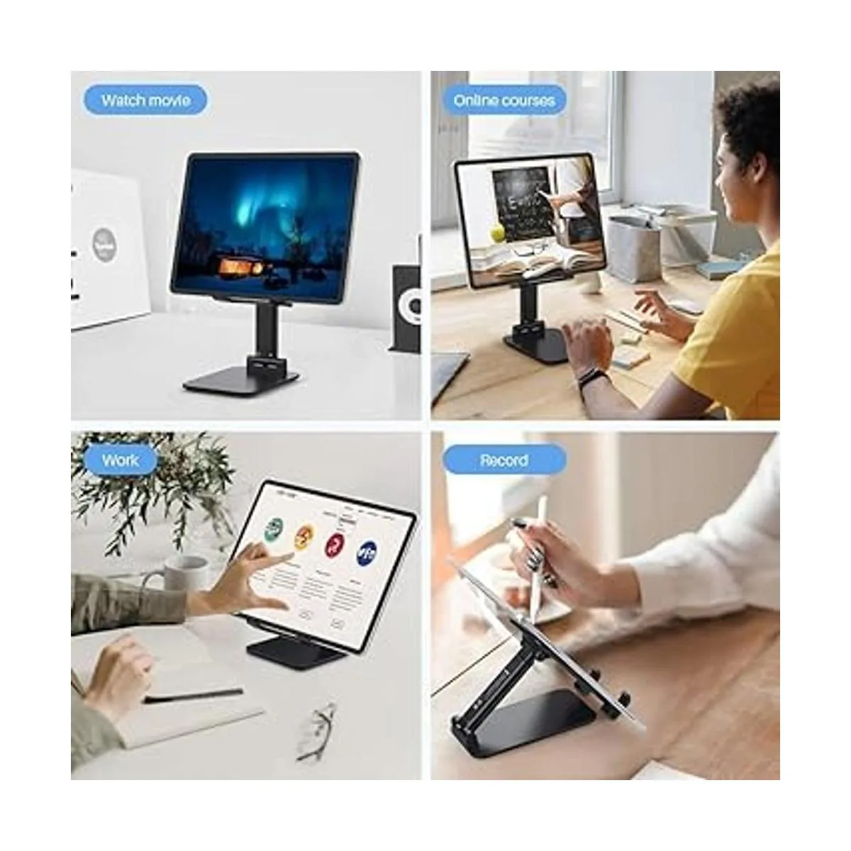 Múltiples ángulos y altura ajustable: el soporte de escritorio para tablet es extensible en altura de 3.16 a 6.26 pulgadas, todo el soporte es de hasta 8.18 pulgadas. Y el clip inclinable te permite personalizar el ángulo 90135 para satisfacer el ángulo de visión más cómodo. El soporte para monitor portátil te ayuda a relajar tu espalda y cuello de manera eficaz incluso ver la pantalla durante mucho tiempo.