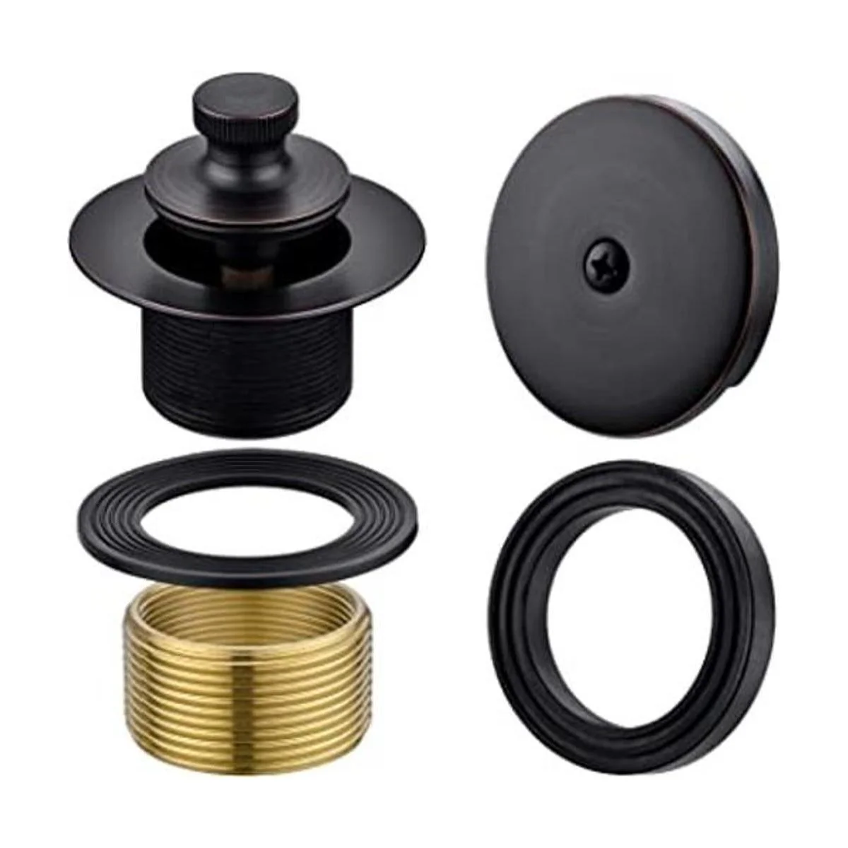 Anpean Kit de drenaje de bañera de latón, kit de drenaje de bañera de elevación y giro con cubierta de desbordamiento, bronce aceitado