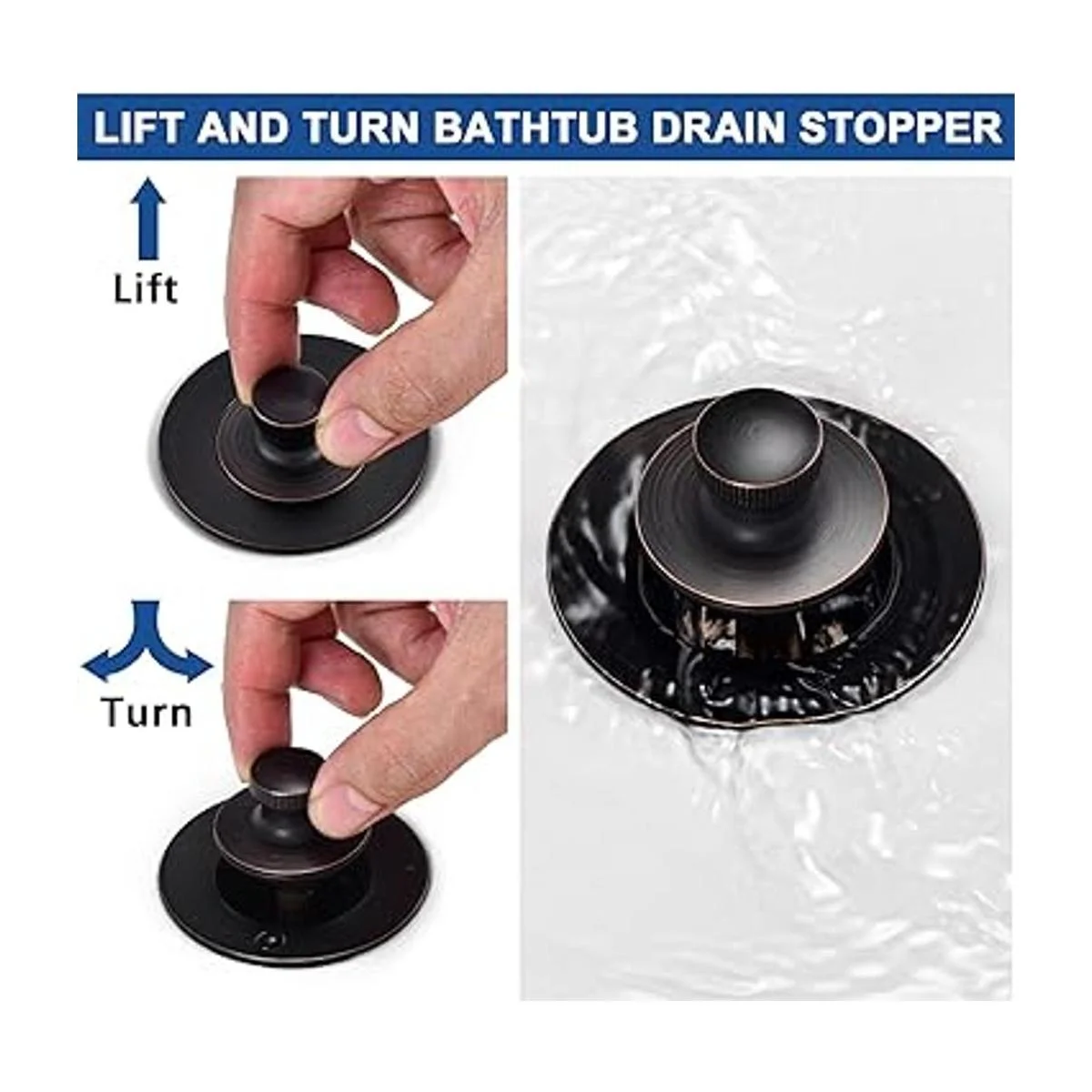 Funcionalidad: el tapón de drenaje de bañera levanta y gira, levántalo, luego gírelo y sujetarlo, gírelo finalmente para cerrarlo. Fácil de instalar.