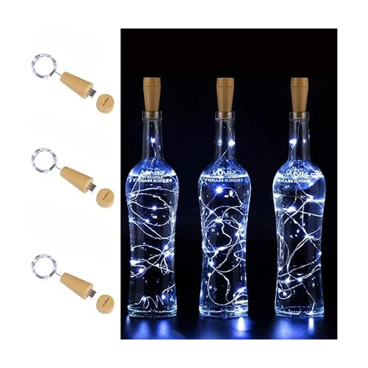 AnSaw 20 luces LED de corcho para botella de vino, paquete de 3 luces recargables para botella, hada estrellada, hogar, luces decorativas para fiestas, Navidad, Halloween, boda blanco frío