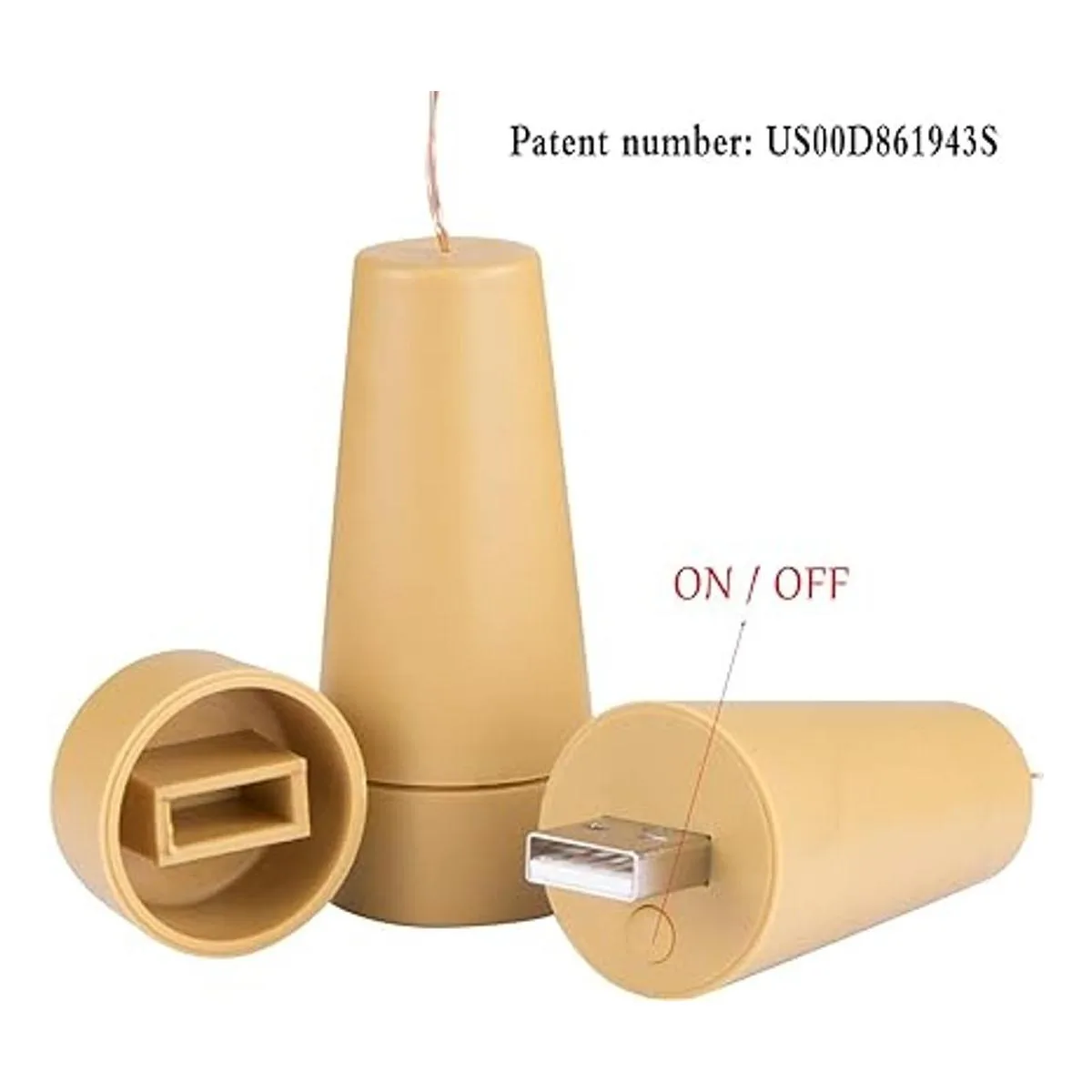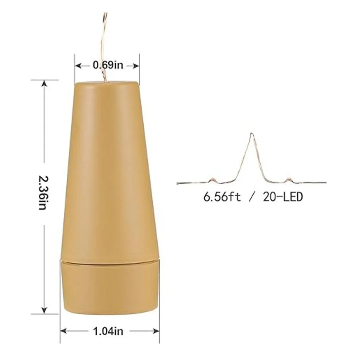 Cable plateado flexible de 6.56 pies, 20 luces LED recargables en forma de corcho que dan la apariencia de distribuir uniformemente dentro de una botella con corcho
