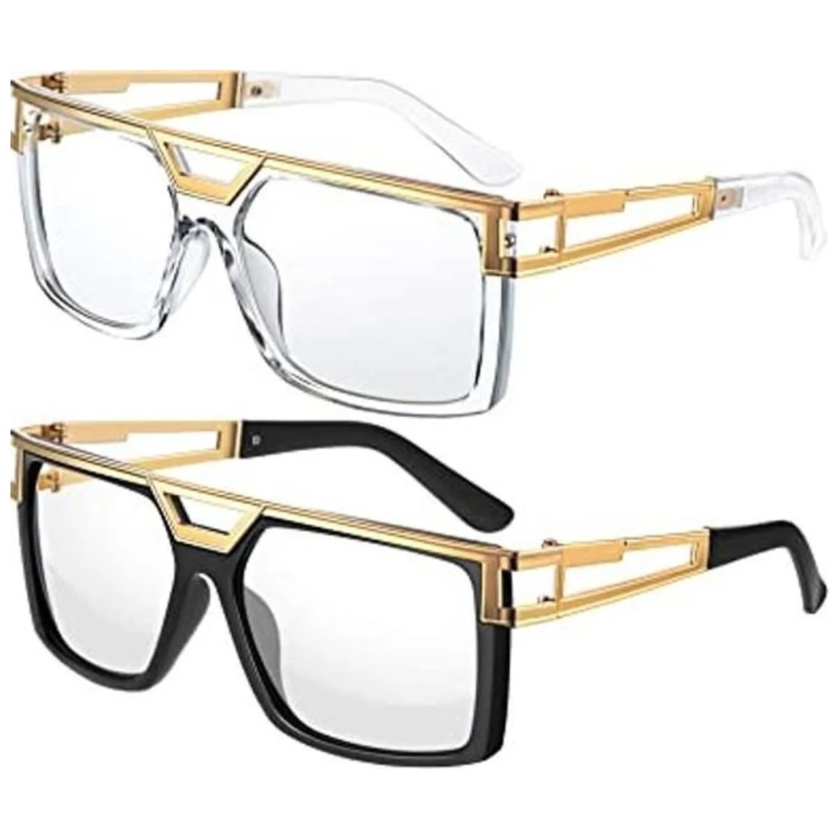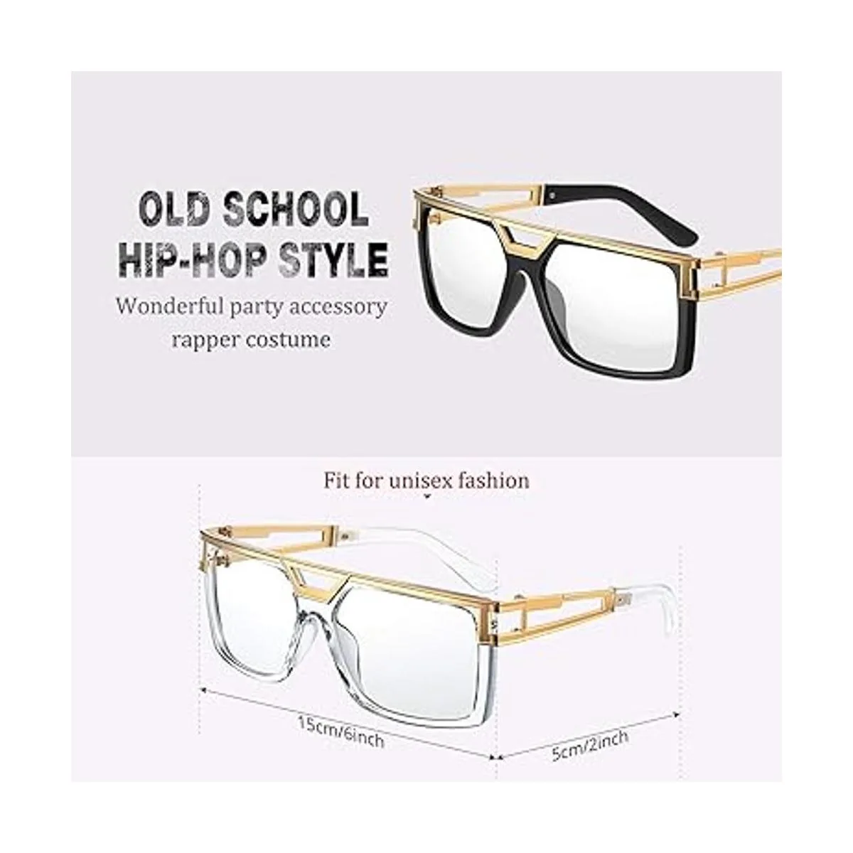 2 gafas clásicas retro: recibirás 1 par de gafas de sol de estilo hiphop de los años 80 con lente transparente, 1 par de gafas de sol retro transparentes de los años 80 con diseños de templos modernos y un aspecto único, maravillosos accesorios para fiestas de disfraces, la forma clásica es una buena opción para la decoración de moda y elegante.