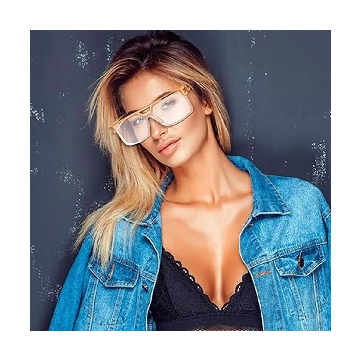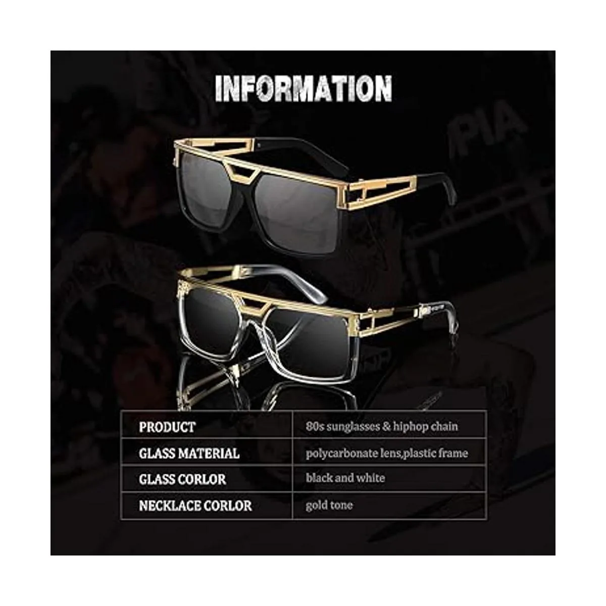 Material resistente: estas gafas de sol de hiphop están hechas de marco de plástico y lente de policarbonato, marco dorado y aspecto hermoso, lo que las convierte en un gran accesorio para tus atuendos, ideal para mostrar tu personalidad y serás genial entre las personas.