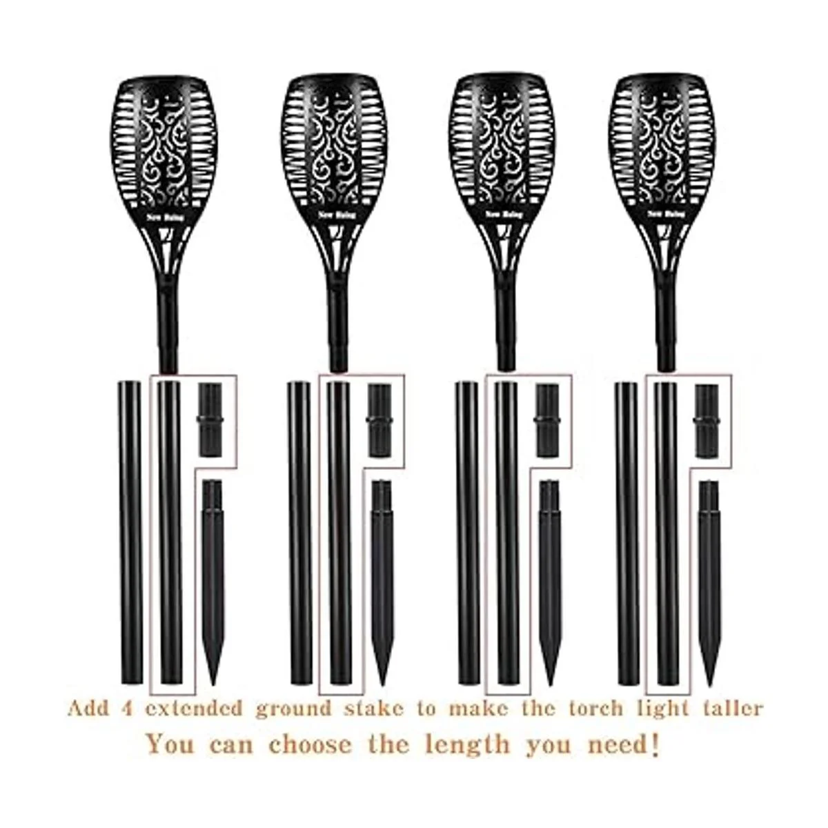 Antorchas solares para exteriores, 4 unidades, 96 luces LED de 43, impermeables, para paisajismo, luz para camino de jardín con llamas vívidas parpadeantes, con encendido y apagado automático desde el atardecer al amanecer, para decoración de luces de Navidad