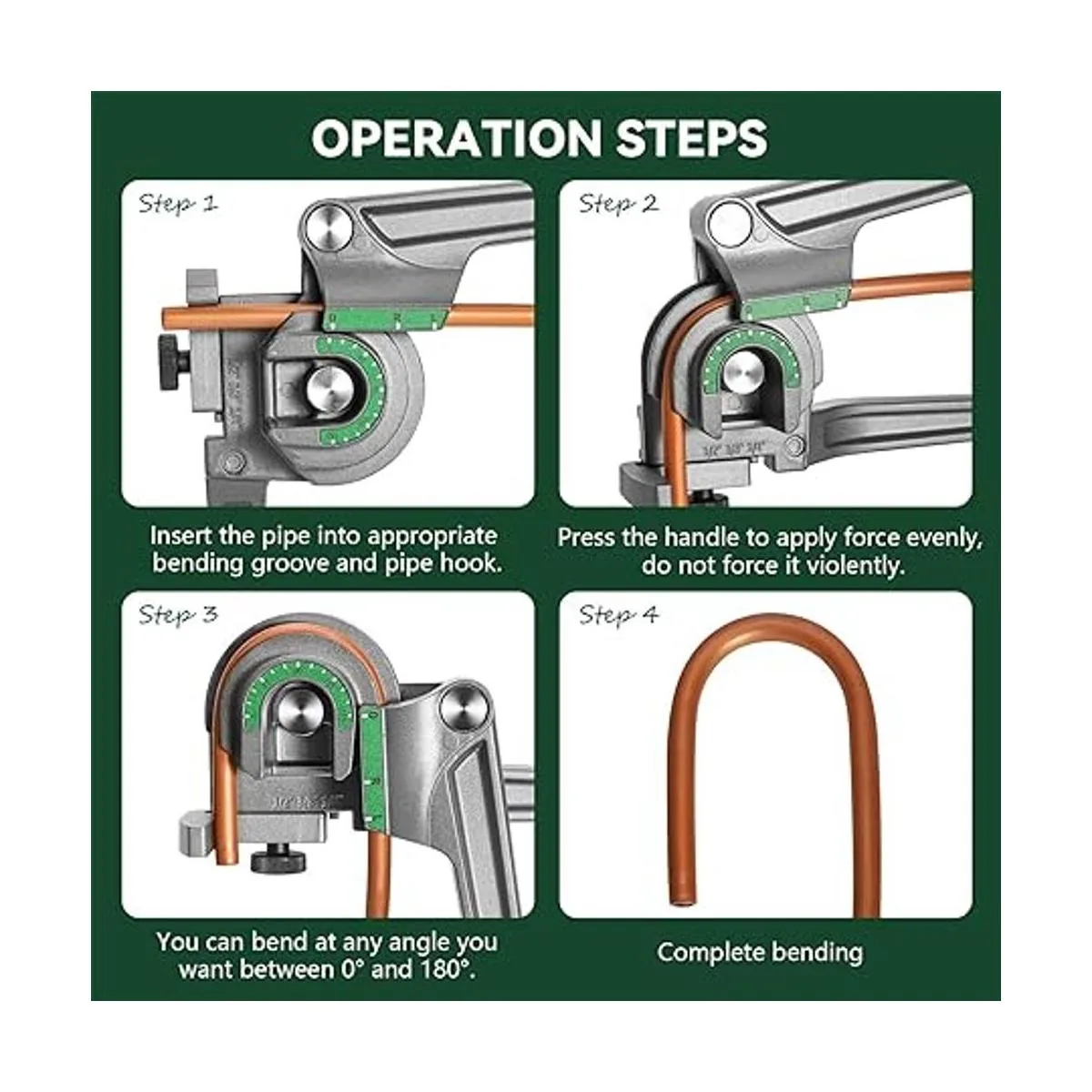 Diseño 3 en 1: el doblador de tubos es una herramienta 3 en 1 y se adapta a tubos de 1/4, 3/8, 1/2 de diámetro exterior.
