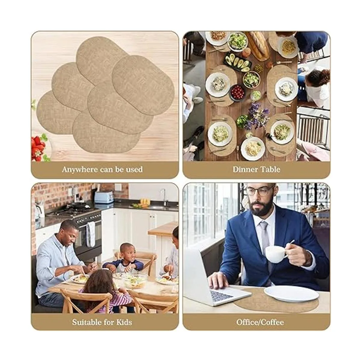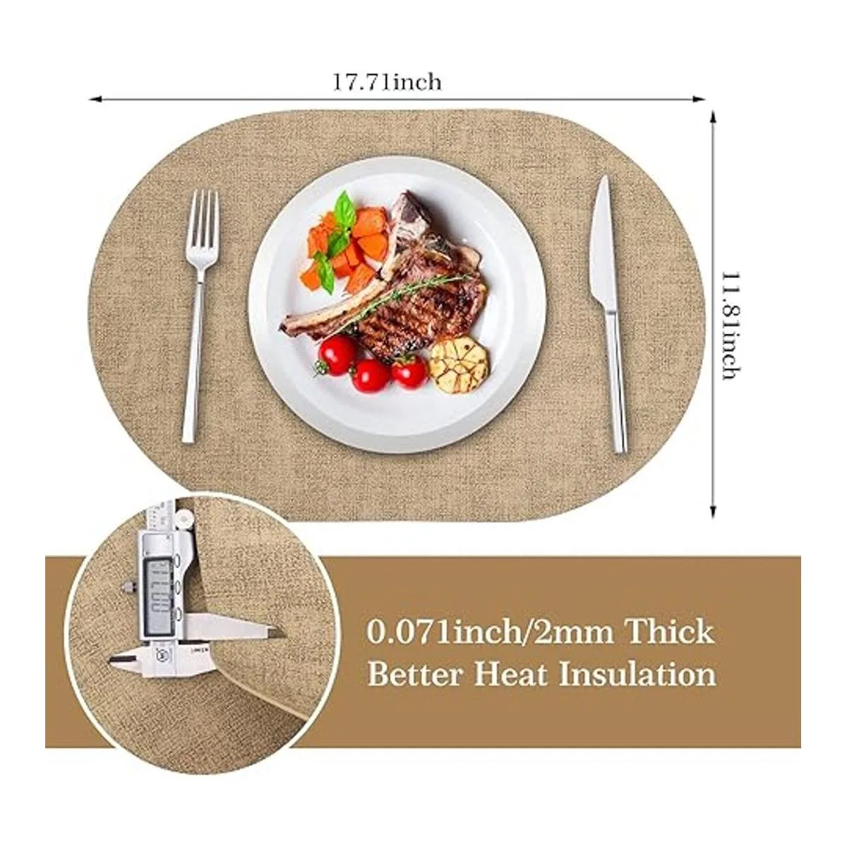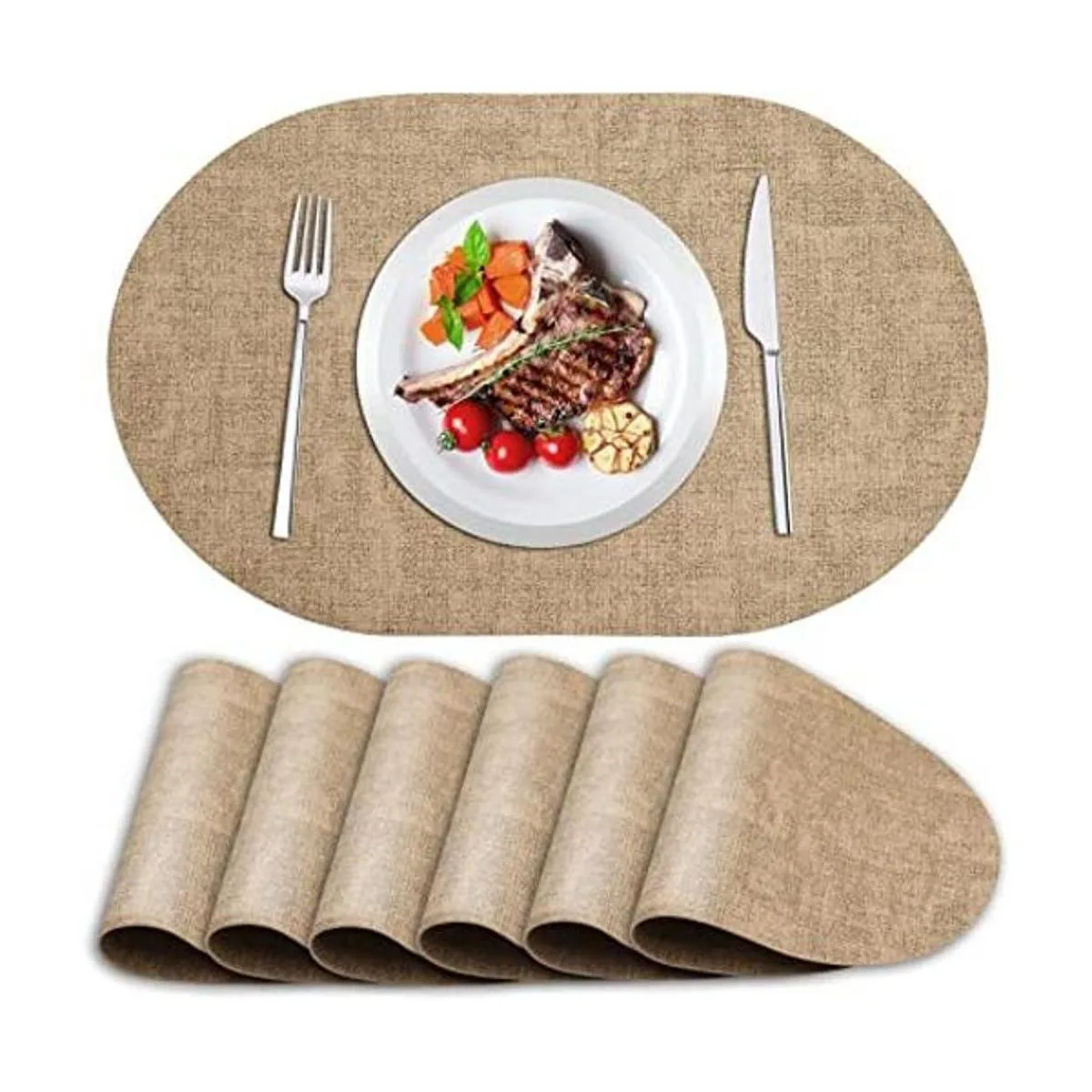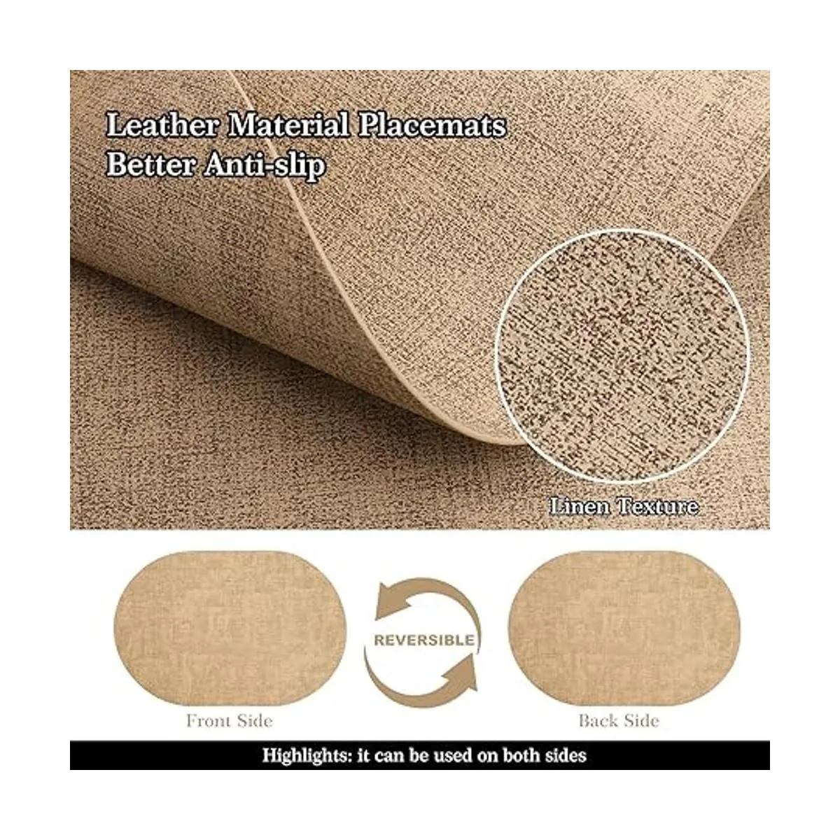 ANUNU Juego de 6 manteles individuales ovalados con diseño de piel sintética de doble cara para mesa de comedor, resistentes al calor, impermeables, lavables, antideslizantes, manteles individuales de mesa de cocina juego de 6, camel