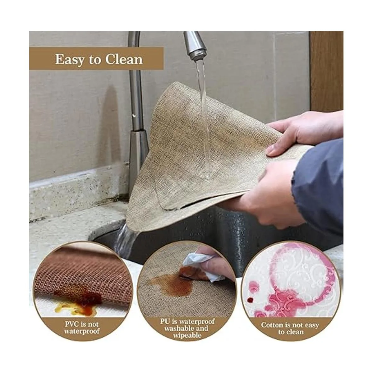 Fácil de limpiar: los manteles individuales de cuero se pueden limpiar y lavar. Utiliza los paños húmedos o papel para limpiar cuando haya algunos líquidos o salsa sobre él. También puedes utilizar un cepillo para limpiarlos.