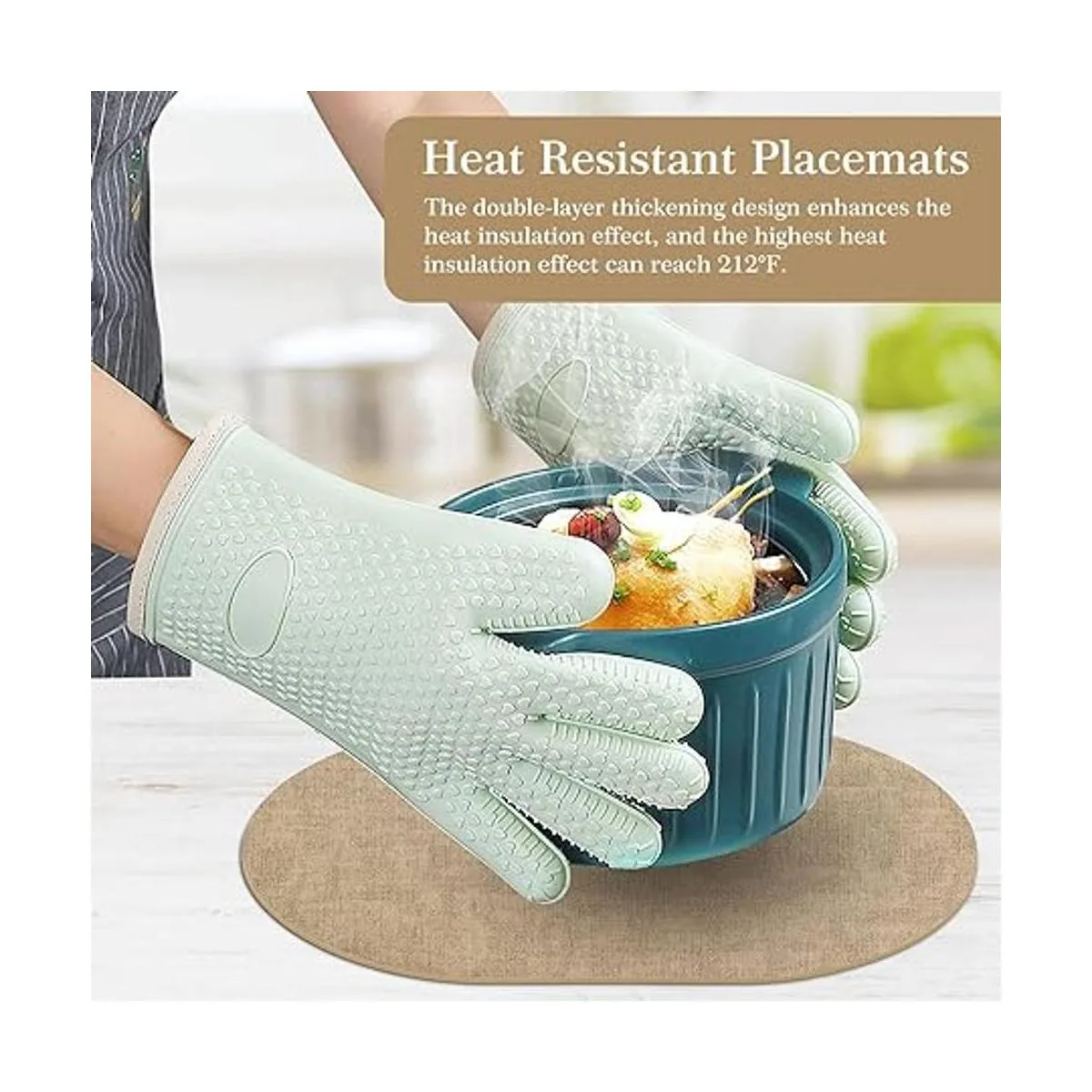 Manteles individuales resistentes al calor: los manteles ovalados tienen aislamiento térmico, 275 F 275.0 F, protegen tu mesa contra el calor, quemaduras, arañazos, rozaduras y derrames. Adecuado para encimera de cuarzo, mesa de patio al aire libre, mesa de cristal o madera.