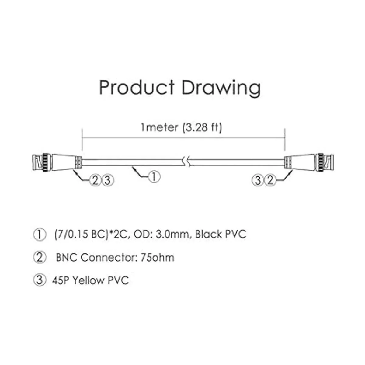 Color del cable: negro, conector BNC: amarillo