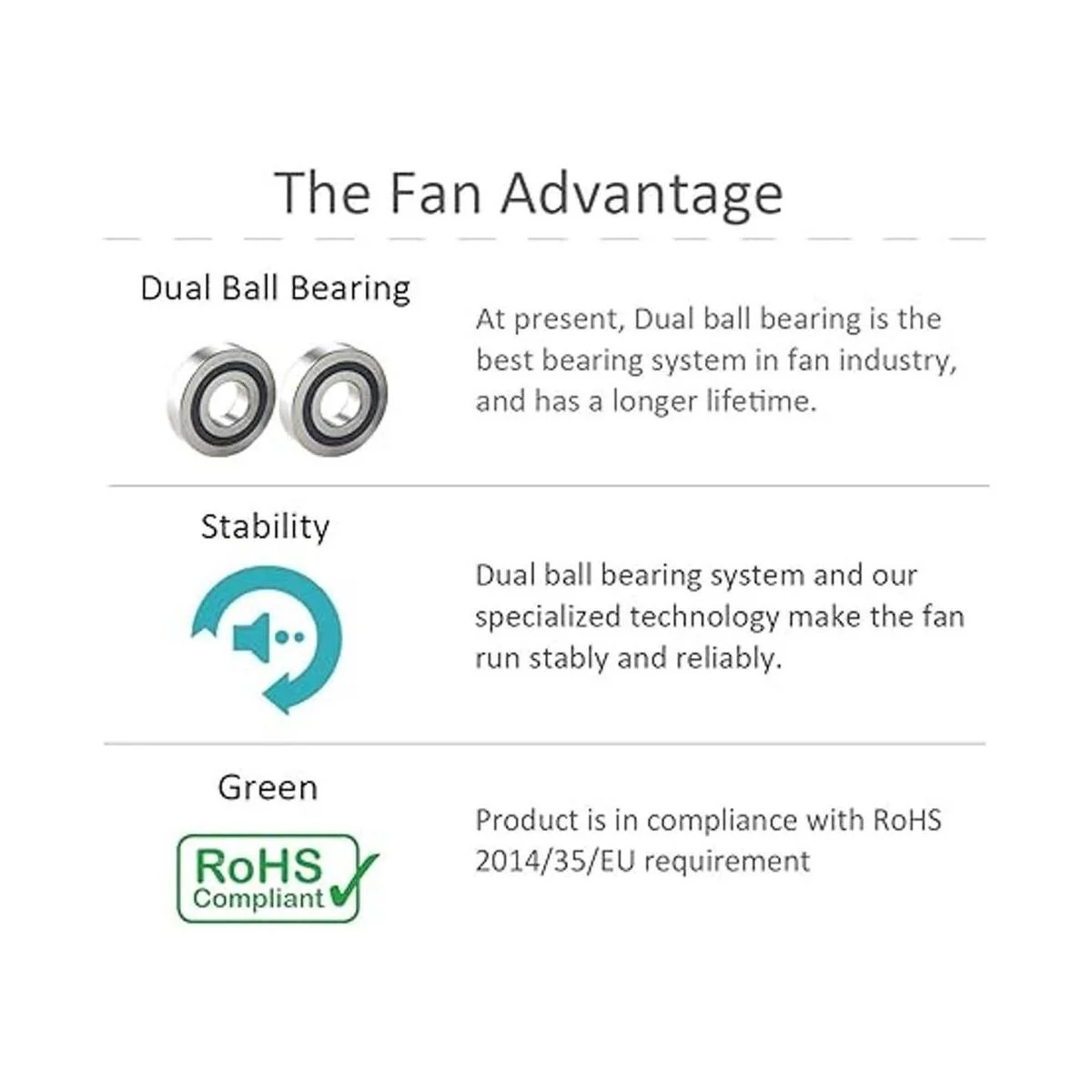 Tipo de rodamiento: rodamientos de bolas duales, bajo nivel de ruido, larga vida útil: 5000 horas.