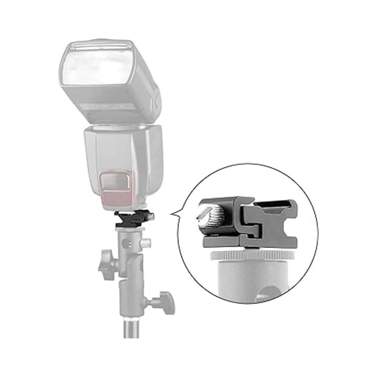 2 piezas de montaje de zapata fría de metal con agujero roscado de 1/4 a 20 para montar tu flash en el soporte. Funciona en monitor, anillo de luz, compatible con flash Canon/Nikon Speedlite, gatillo, brazo mágico, micrófono y cualquier accesorio que tenga un tipo de zapato de cámara.