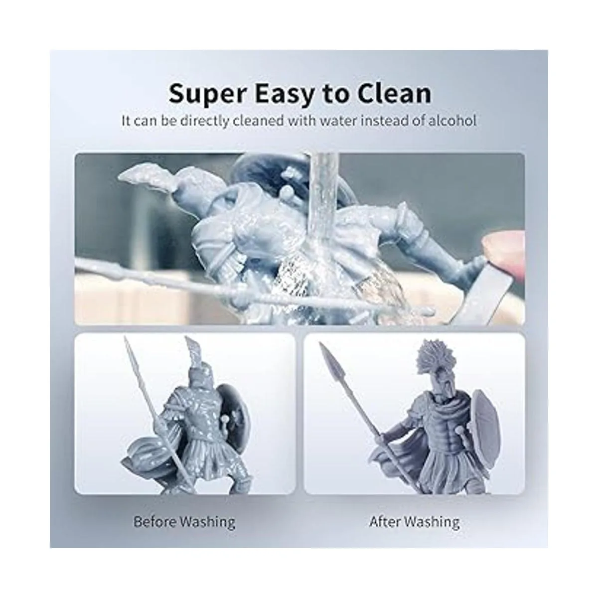 La resina lavable al agua Anycubic contiene grupos hidrofílicos con buena solubilidad en agua, que se puede limpiar directamente con agua en lugar de alcohol y ahorrar en gran medida el costo de uso de alcohol. Además, también se puede limpiar con cualquier máquina de lavado y curado o limpieza ultrasónica.
