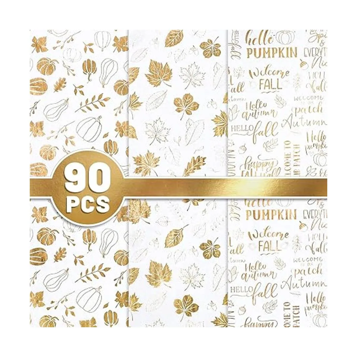 Acción de Gracias de otoño: nuestro papel de seda está diseñado con color de fondo blanco, patrones de calabazas, hojas de otoño, hojas de arce y saludos como hola calabaza y bienvenida otoño, lleno del encanto del otoño.